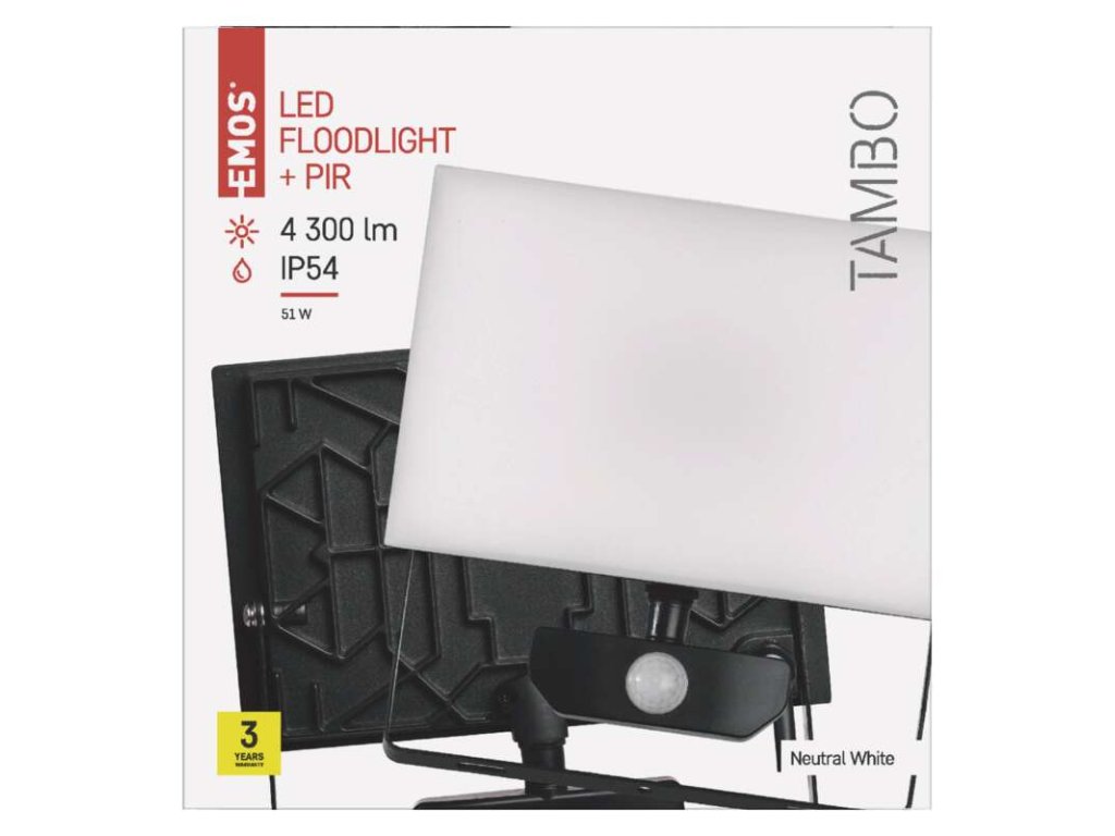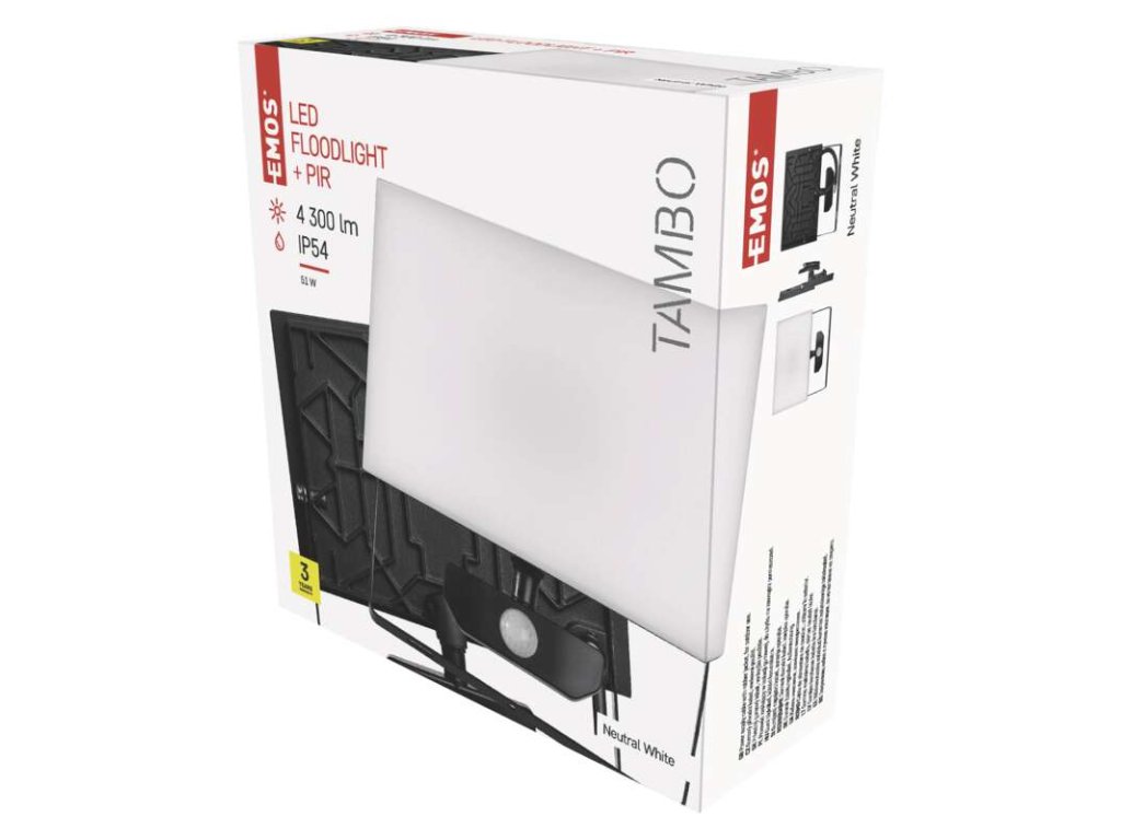 Reflektory TAMBO sú tenké iba 64 milimetrov a pritom nahradia až 430W žiarovku. Vďaka mliečnemu difúzoru poskytujú príjemne rozptýlené svetlo. Tento ultra tenký reflektor si navyše môžete zaobstarať aj s pohybovým čidlom. Vďaka vysokému stupňu krytia IP65 sú reflektory TAMBO spoľahlivo osvetľujú vnútorné aj vonkajšie priestory v teplotách od -20 do +40 °C. Životnosť svietidla je 25 tisíc hodín. Uhol osvetlenia je 120° a poskytuje svetelný tok až 4000 lm.