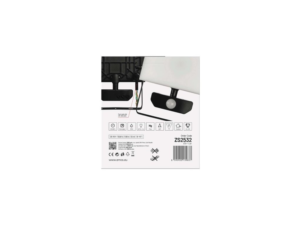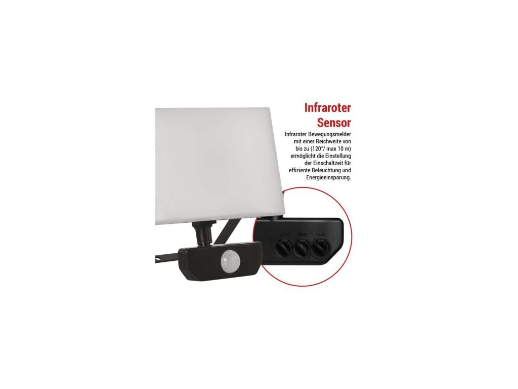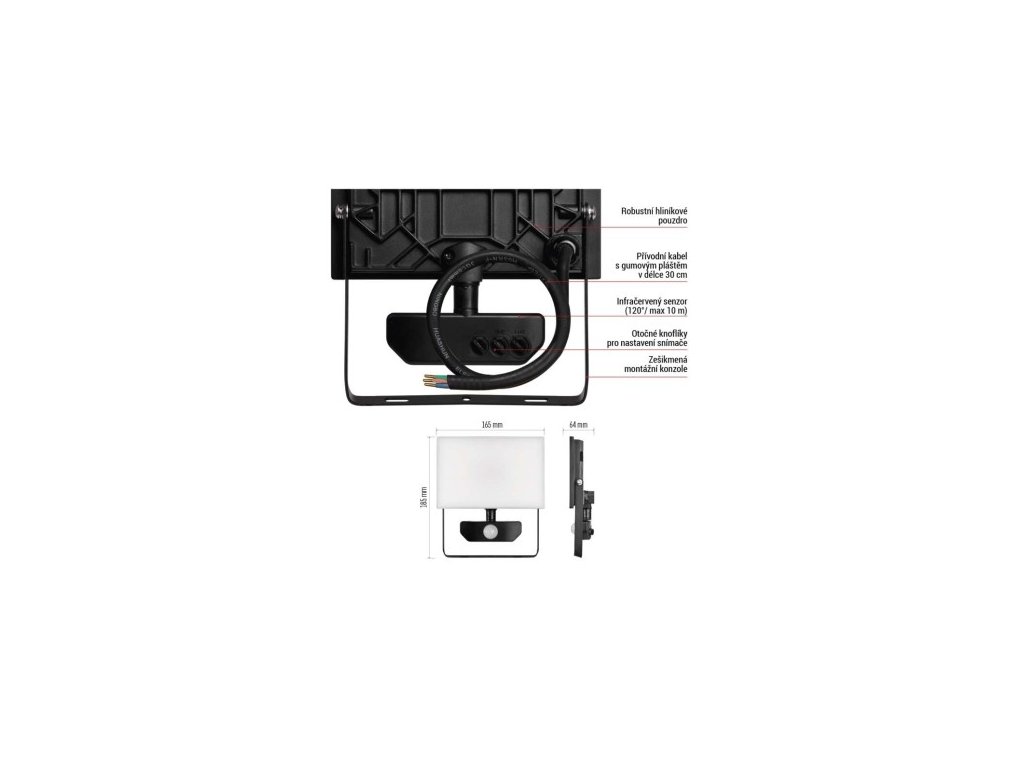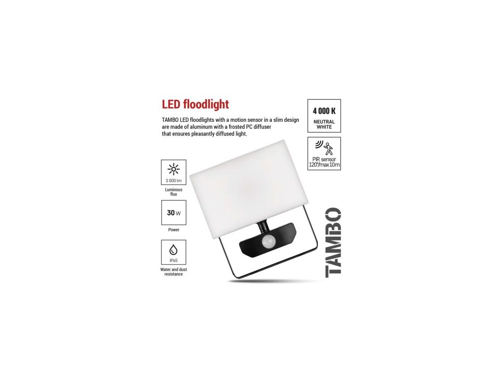 LED reflektor TAMBO so senzorom pohybu, 30 W, 3000 lm, čierny