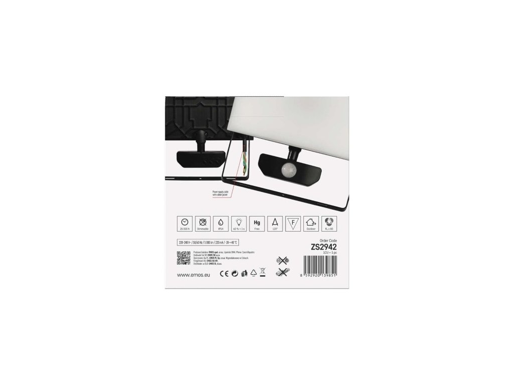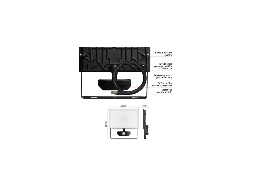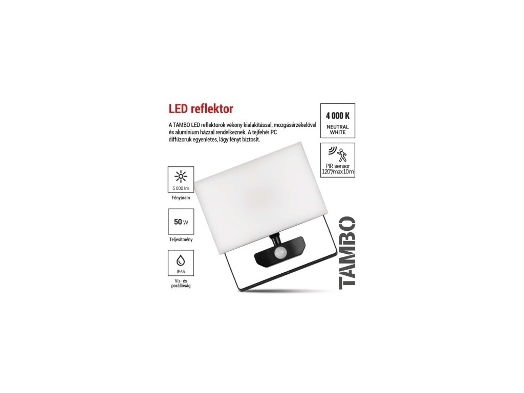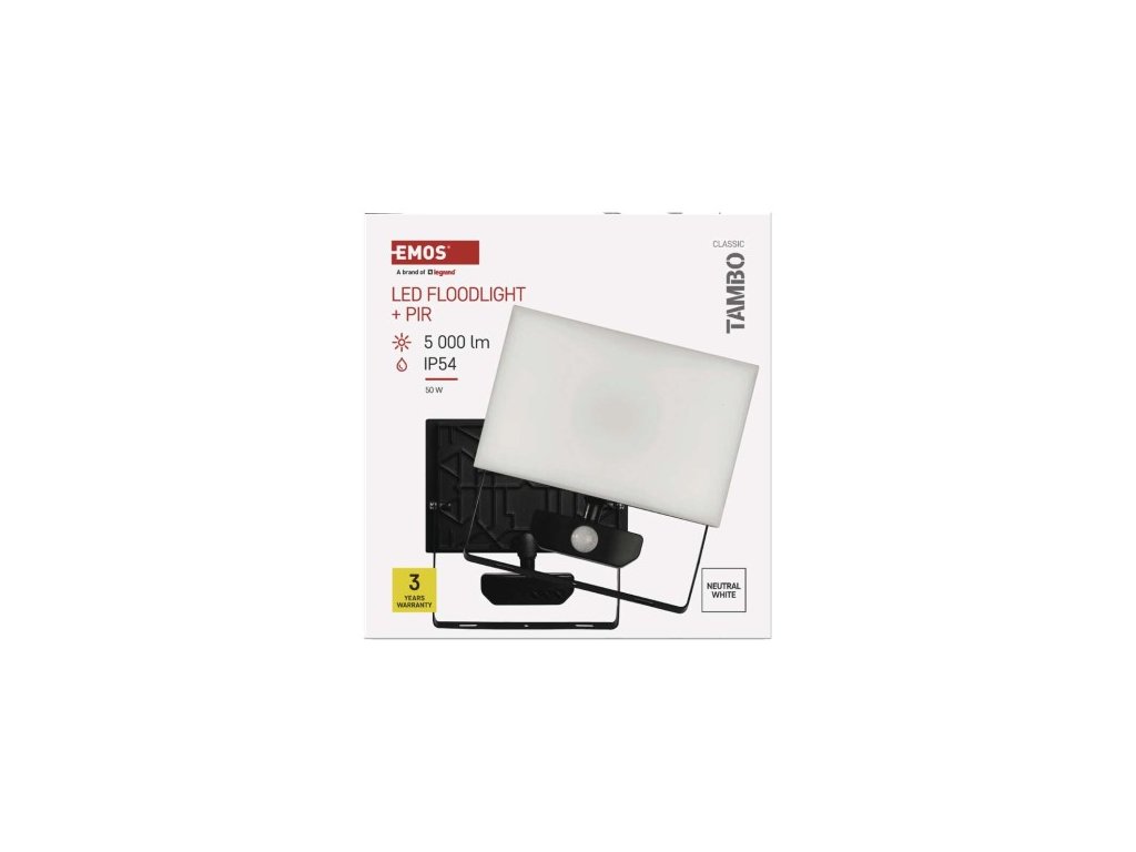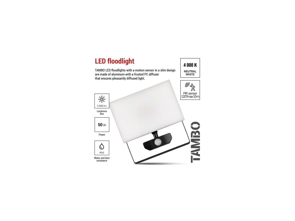 LED reflektor TAMBO so senzorom pohybu, 50 W, 5000 lm, čierny