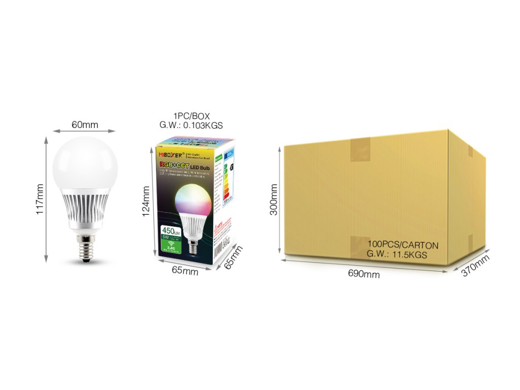 LED stmievateľná žiarovka E14, RGB+CCT, 5W, 2.4GHz, FUT013