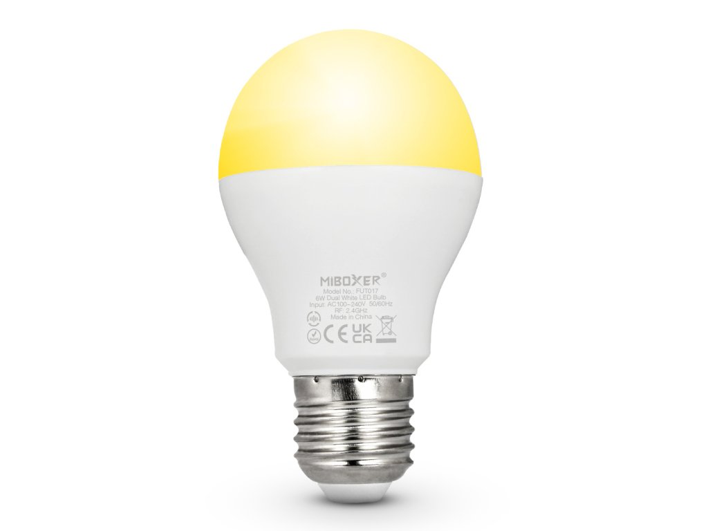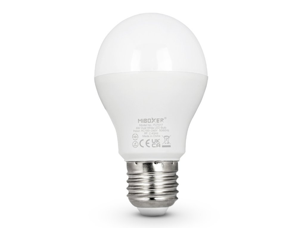 LED stmievateľná žiarovka E27, jas + CCT, 6W, 2.4GHz, FUT017
