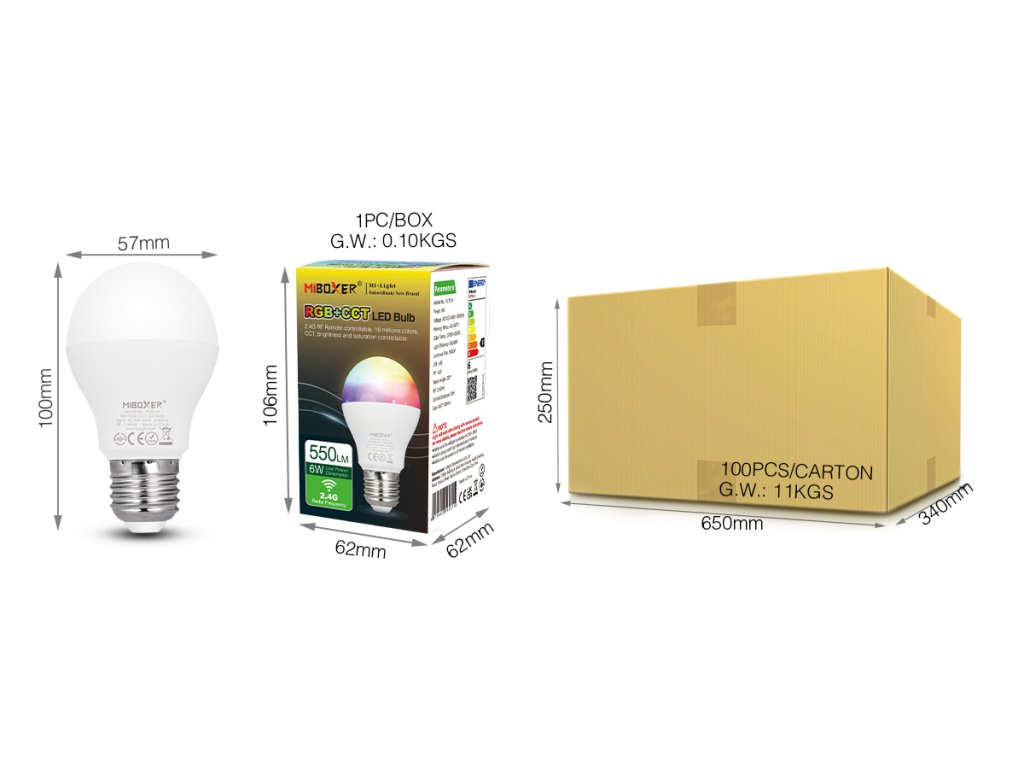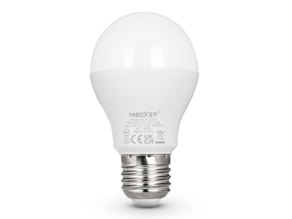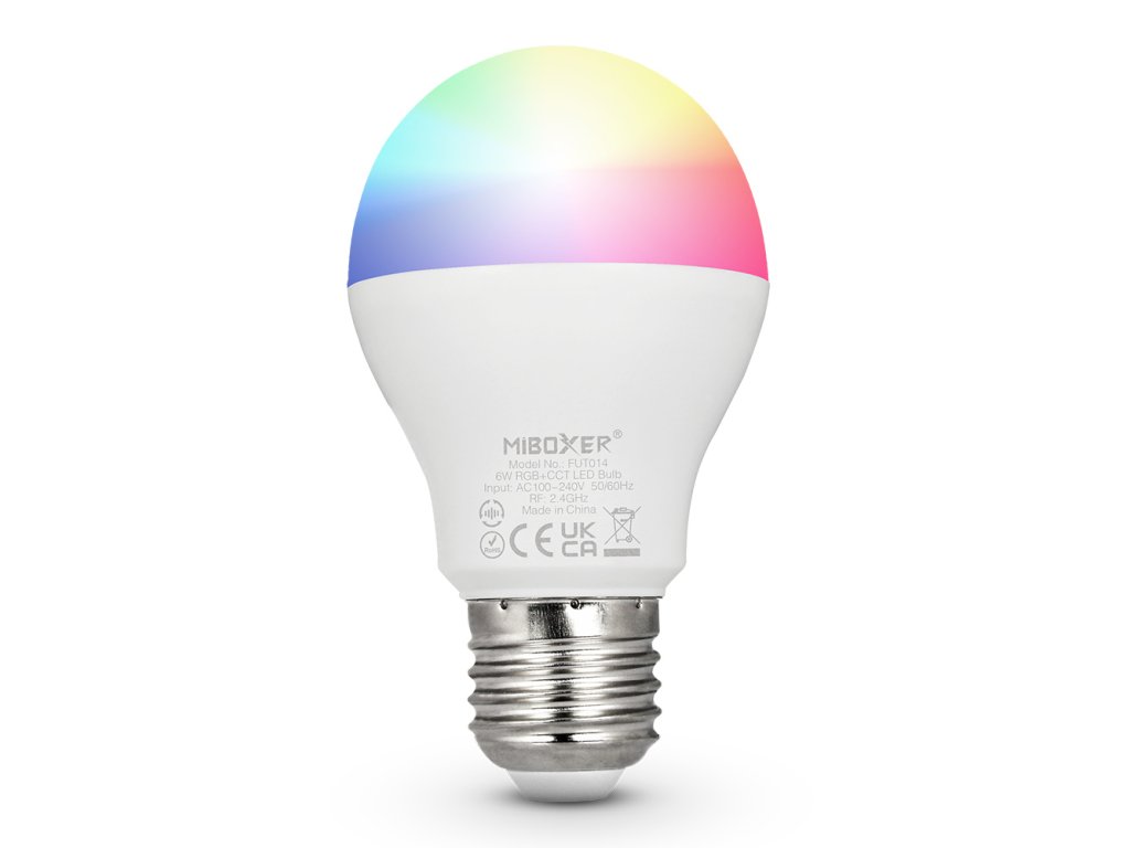 LED stmievateľná žiarovka E27, RGB+CCT, 6W, 2.4GHz, FUT014