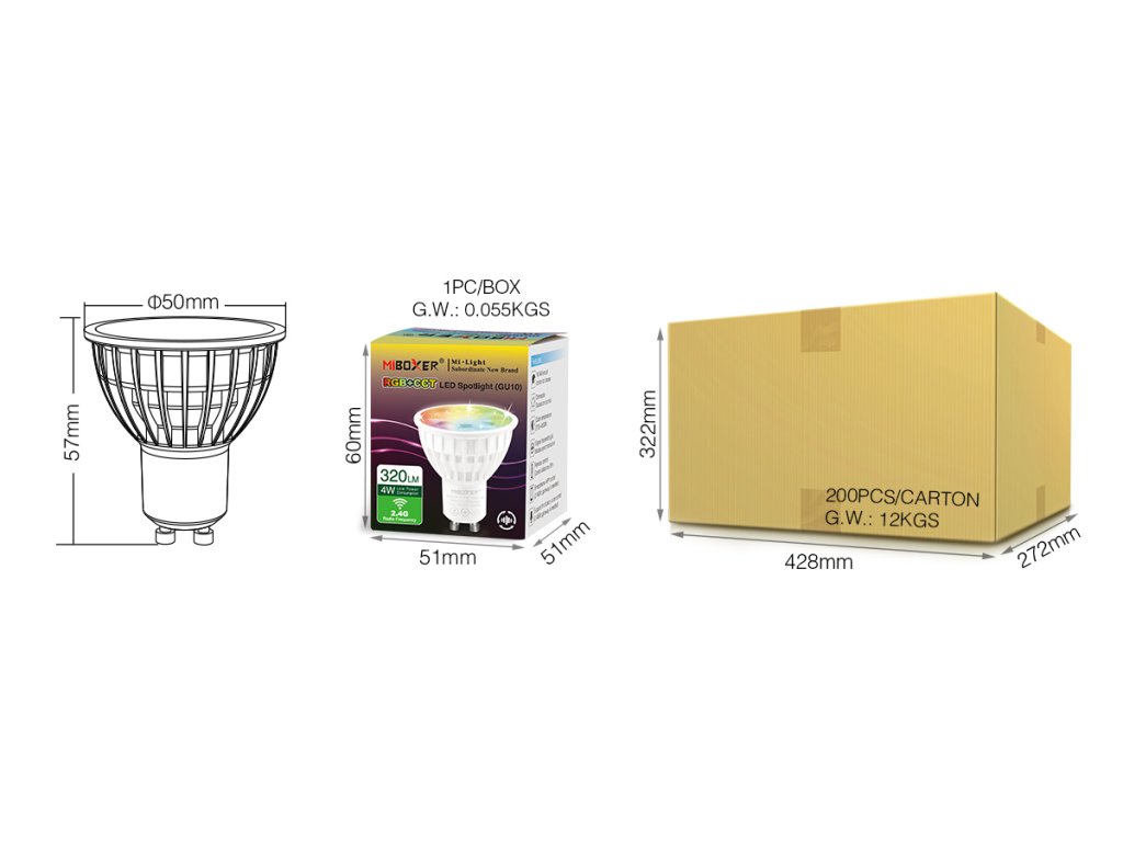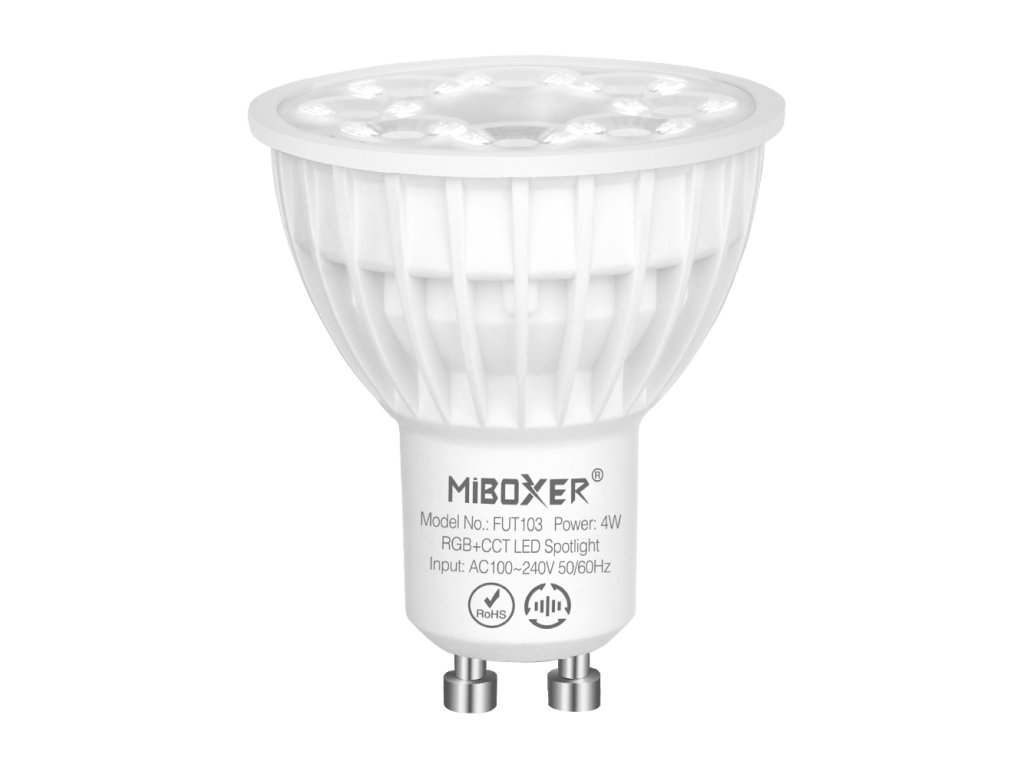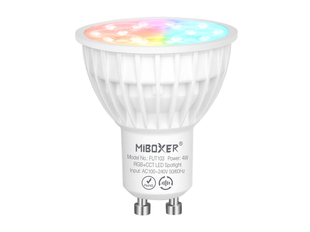 LED stmievateľná žiarovka GU10, RGB+CCT, 4W, 2.4GHz, FUT103