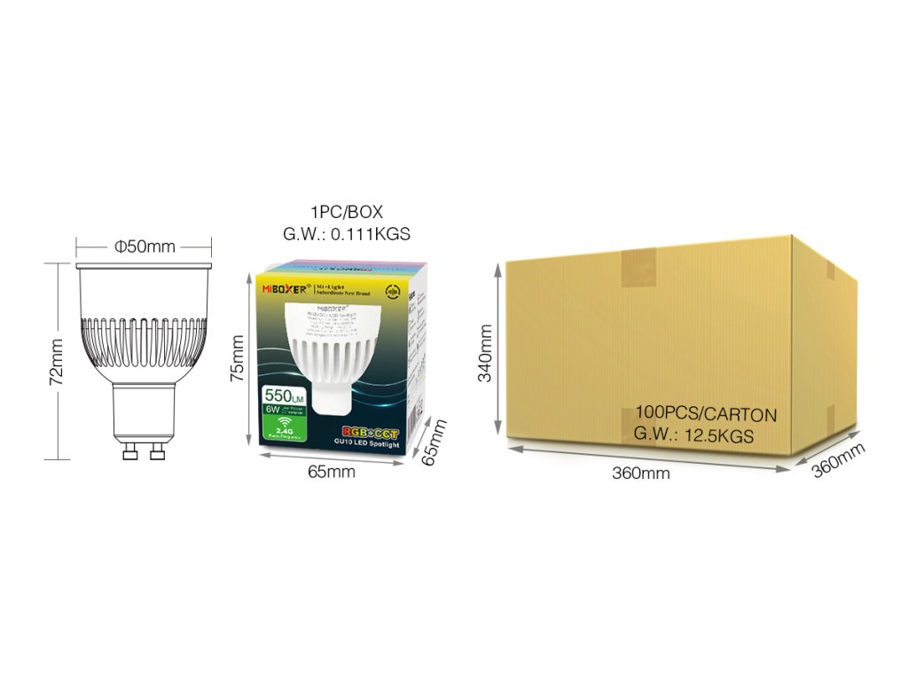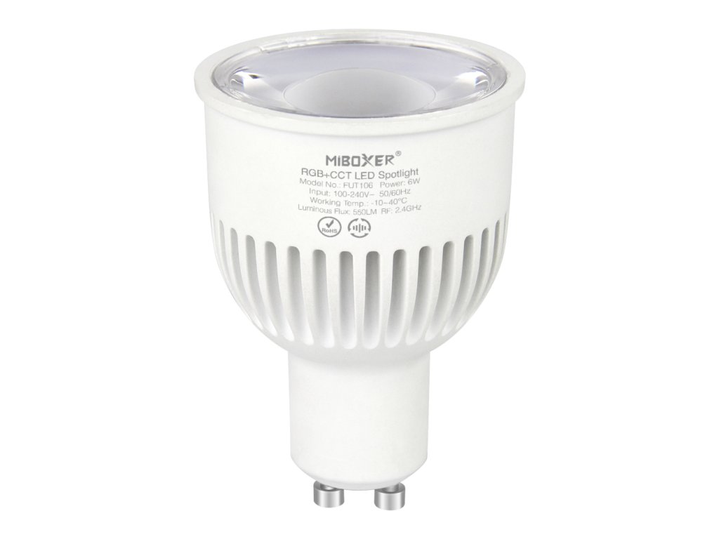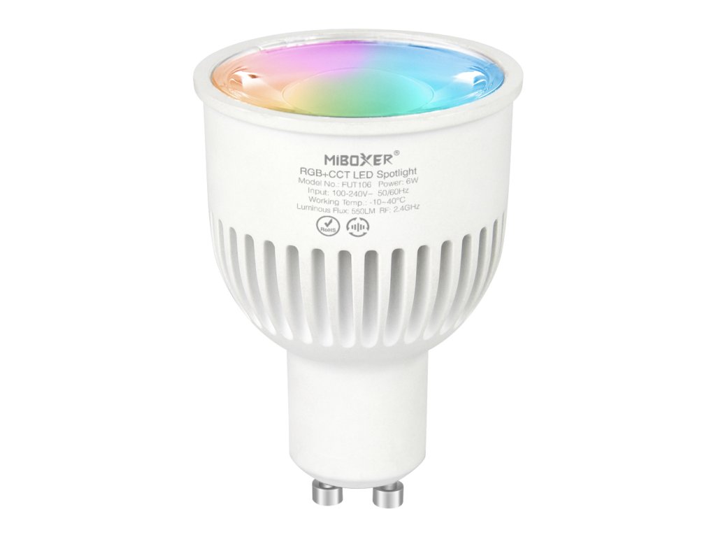 LED stmievateľná žiarovka GU10, RGB+CCT, 6W, 2.4GHz, FUT106