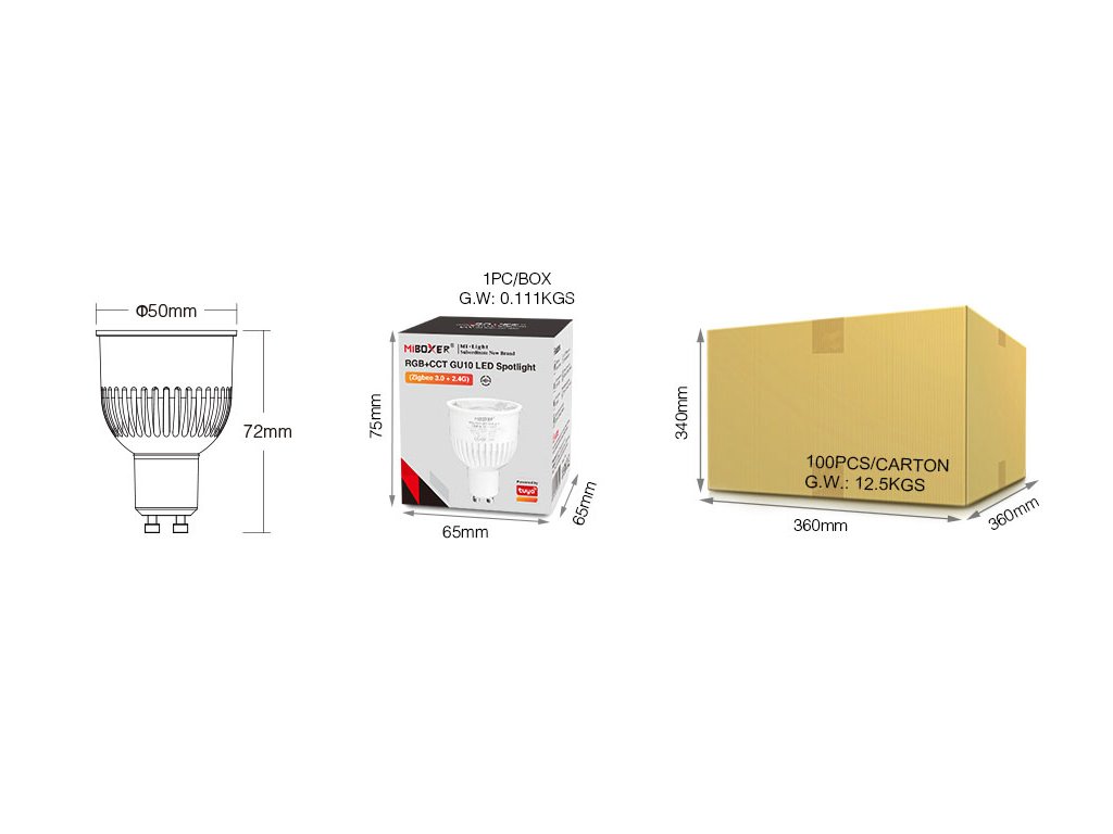 LED stmievateľná žiarovka GU10, RGB+CCT, Zigbee 3.0, 6W, 2.4GHz, FUT106ZR