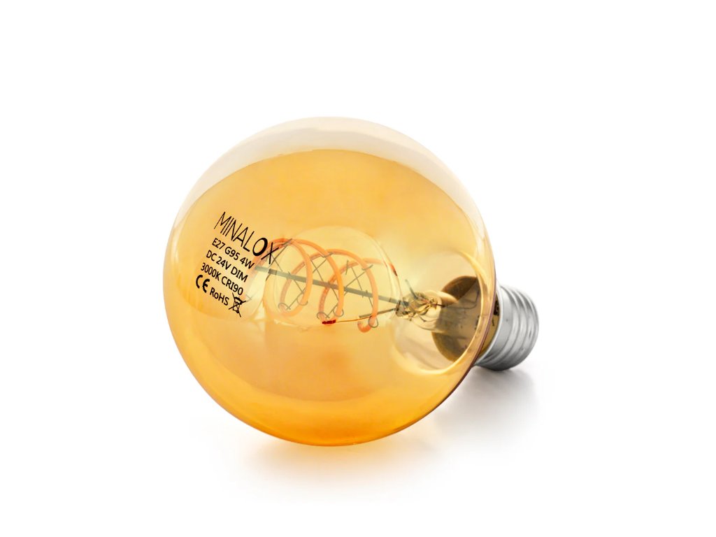 LED stmievateľná žiarovka Minalox G95 E27, 3,6W, 24V, 3000K