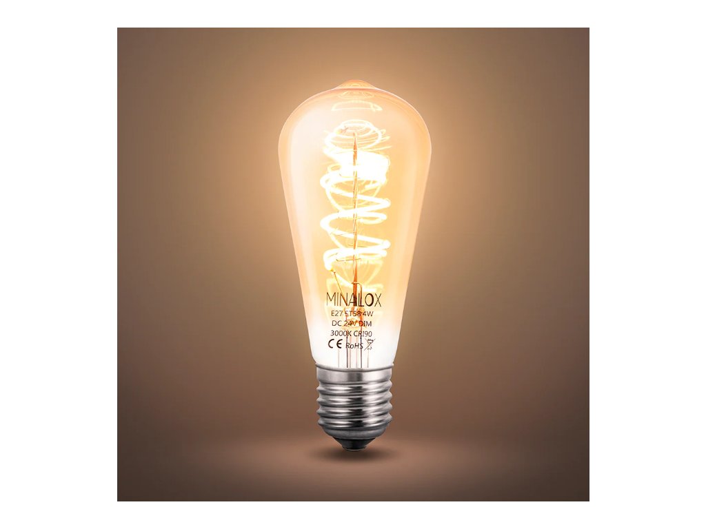 LED stmievateľná žiarovka Minalox ST58 E27, 4W, 24V, 3000K