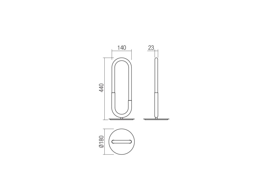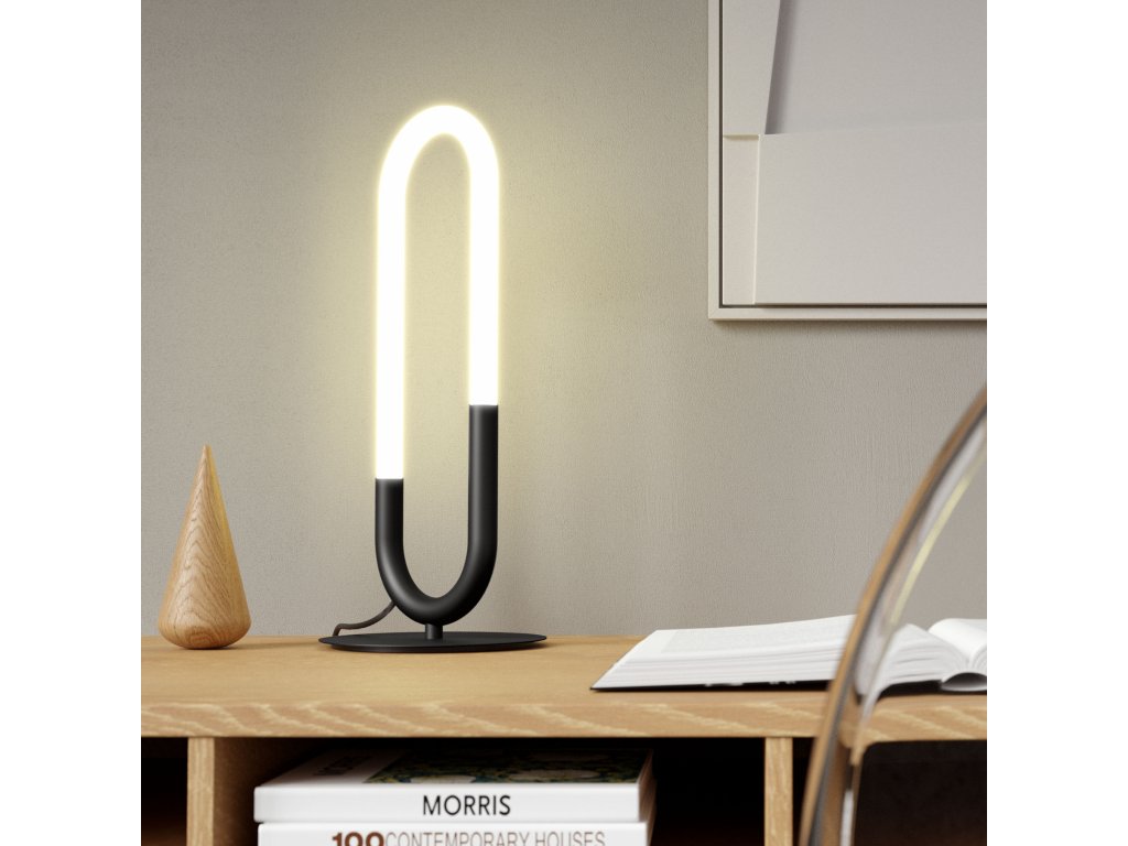Stolná lampa vybavená SMD LED diódami, kovová konštrukcia lakovaná pieskovo čiernou alebo mosadznou farbou s opálovým akrylovým difúzorom.