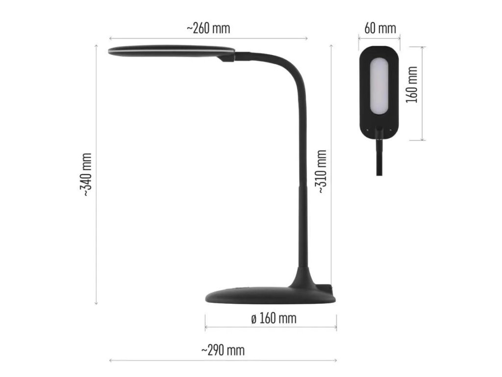 farba: čierna|farba svetla: neutrálna biela|činiteľ starnutia: neuvádza sa|čip LED: SMD|dĺžka prívodného kábla: 1,7 m|energetická trieda: A+|energetická trieda (od 1.9.2021): neuvádza sa|index podania farieb (CRI): Ra >80|integrovaná na kov, plast + guma | max. výkon: 6,5 W|napájací zdroj: 12 V/400 mA|napájací zdroj súčasťou balenia: áno|napätie: 100–240 V|obsah ortuti: <0 mg|pätica (uchytenie žiarovky): neuvádza sa|počet LED: neuvádza sa|počet spínacích cyklov: 5:0 1 ks, krabica|rozmer: 160 × 550 × 345 mm|rýchlosť nábehu na 100 %: 0 s|stmievanie: áno|svetelný tok: 400 lm|teplota chromatickosti: 4 000 K|typ napájania: sieť|účinník: neuvádza hodínDodatočné parametre