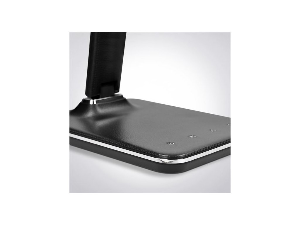 LED stolná lampička s displejom, 9W, voľba teploty svetla, koža, čierna