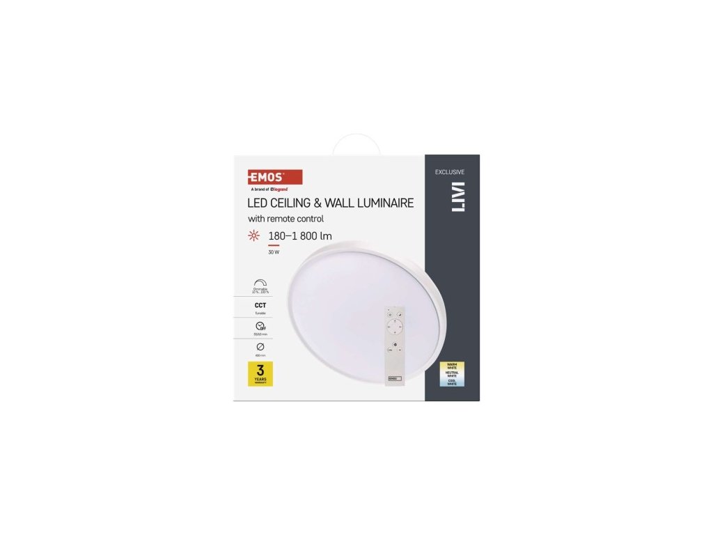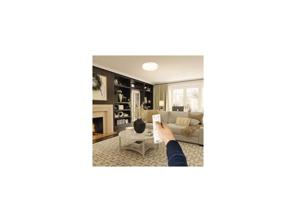 farba svetla: teplá biela–studená biela|farba tela: biela|diaľkový ovládač: áno (2× AAA, R03)|do chodby a na schodisko: áno|do dielne a garáže: ne|do kancelárie: áno|do kúpeľne: ne|do kuchyne: áno|do obývačky, ložnice senzor|flicker-free: áno|frekvencia: 50/60 Hz|index podania farieb (CRI): Ra > 80|kategória: EXCLUSIVE|krytie: IP20|materiál difúzora: plast (PMMA)|materiál LGP: neuvádza sa|materiál tela: oceľový plech|montážny otvor: montáž žiarovku: 110 W|napätie: 220–240 V|na záhradu a balkón: ne|pohybový senzor: neuvádza sa|príkon: 30 W|predajný obal: 1 ks, krabica|prúd: 300 mA|rad: LIVI|rozmer: priemer 400 × 85 mm tok: 1 800 lm|teplota chromatičnosti: 2 700–6 500 K|tvar: kruh|typ difúzora: mliečny|typ svietidla: klasické svietidlo|účnik: > 0,9|UGR<: neuvádza sa|uhol vyžarovania: 115°|umiestnenie 175 mA|záručná doba: 3 roky|zdroj svetla: LED|životnosť: 30 000 hodín|spôsob montáže: prisadenéDodatočné parametre