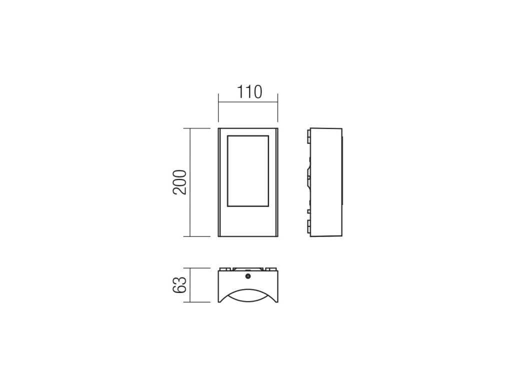 Vonkajšie nástenné svietidlo vybavené SMD LED diódami, telo z tlakovo liateho hliníka elektrostaticky lakované v tmavo šedej farbe, hnedej a bielej, difúzor z opálového polykarbonátu.