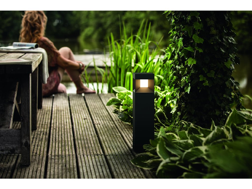 Vonkajšie stĺpikové LED svietidlo Parterre, vyrobené z hliníka s čiernou povrchovou úpravou. Svietidlo má jednoduchý moderný design. Vďaka vysokému stupňu krytia IP44 je vhodné ako vonkajšie osvetlenie, svietidlo je vhodné pre osvetlenie príjazdových ciest a vonkajších otvorených priestorov. Difúzor z mliečneho plastu s integrovaným LED zdrojom s príkonom 8 W so svietivosťou až 800 lm a teplotou chromatickosti;2700 K. Intenzitu nie je možné stmievať. Životnosť zdroja je ohromujúca, dosahuje až 25 000 hodín. Celkové rozmery 10 x 10 x 40 cm.