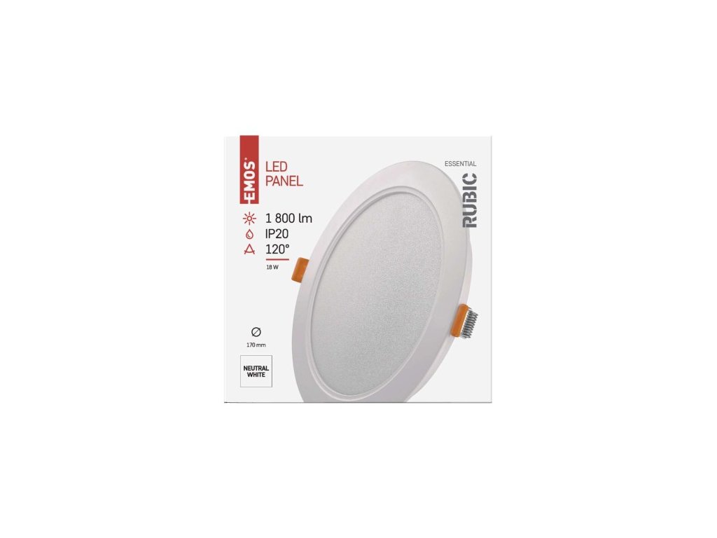farba svetla: neutrálna biela|farba tela: biela|diaľkový ovládač: ne|do chodby a na schodisko: áno|do dielne a garáže: ne|do kancelárie: ne|do kúpeľne: ne|do kuchyne: áno|do obývačky, spálne a detskej izby: ne|dosah senzora: nemá senzor|flicker Hz|index podania farieb (CRI): Ra > 80|kategória: ESSENTIAL|krytie: IP20|materiál difúzora: plast (PC)|materiál LGP: neuvádza sa|materiál tela: plast (PC)|montážny otvor: 140–160 mm|možnosť stmievania: ne|náhrada za žiarovku:2| V|na záhradu a balkón: ne|pohybový senzor: ne|príkon: 18 W|predajný obal: 1 ks, krabica|prúd: 157 mA|rad: RUBIC|rozmer: priemer 170 × 26 mm|svetelná účinnosť: 100 lm/W|svetelný tok: 1 000 K|tvar: kruh|typ difúzora: mliečny|typ svietidla: klasické svietidlo|účnik: > 0,7|UGR<: neuvádza sa|uhol vyžarovania: 120°|umiestnenie: stropný|výstupný prúd zo zdroja: 50 mA|záručná doba: 0 roky|2 hodín|spôsob montáže: vstavanéDodatočné parametre