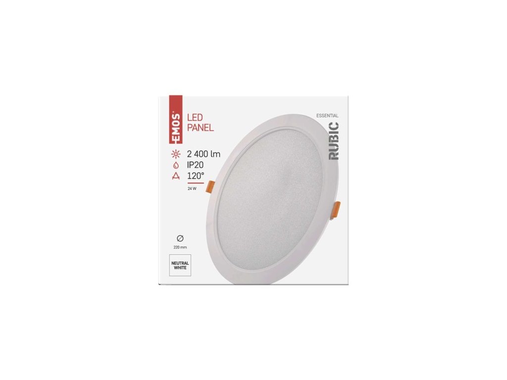 farba svetla: neutrálna biela|farba tela: biela|diaľkový ovládač: ne|do chodby a na schodisko: áno|do dielne a garáže: ne|do kancelárie: ne|do kúpeľne: ne|do kuchyne: áno|do obývačky, spálne a detskej izby: ne|dosah senzora: nemá senzor|flicker Hz|index podania farieb (CRI): Ra > 80|kategória: ESSENTIAL|krytie: IP20|materiál difúzora: plast (PC)|materiál LGP: neuvádza sa|materiál tela: plast (PC)|montážny otvor: 190–210 mm|možnosť stmievania: ne|náhrada za žiarovku: 2| V|na záhradu a balkón: ne|pohybový senzor: ne|príkon: 24 W|predajný obal: 1 ks, krabica|prúd: 209 mA|rad: RUBIC|rozmer: priemer 220 × 26 mm|svetelná účinnosť: 100 lm/W|svetelný tok: 2 000 K|tvar: kruh|typ difúzora: mliečny|typ svietidla: klasické svietidlo|účnik: > 0,7|UGR<: neuvádza sa|uhol vyžarovania: 120°|umiestnenie: stropný|výstupný prúd zo zdroja: 50 mA|záručná doba: 0 roky|2 hodín|spôsob montáže: vstavanéDodatočné parametre