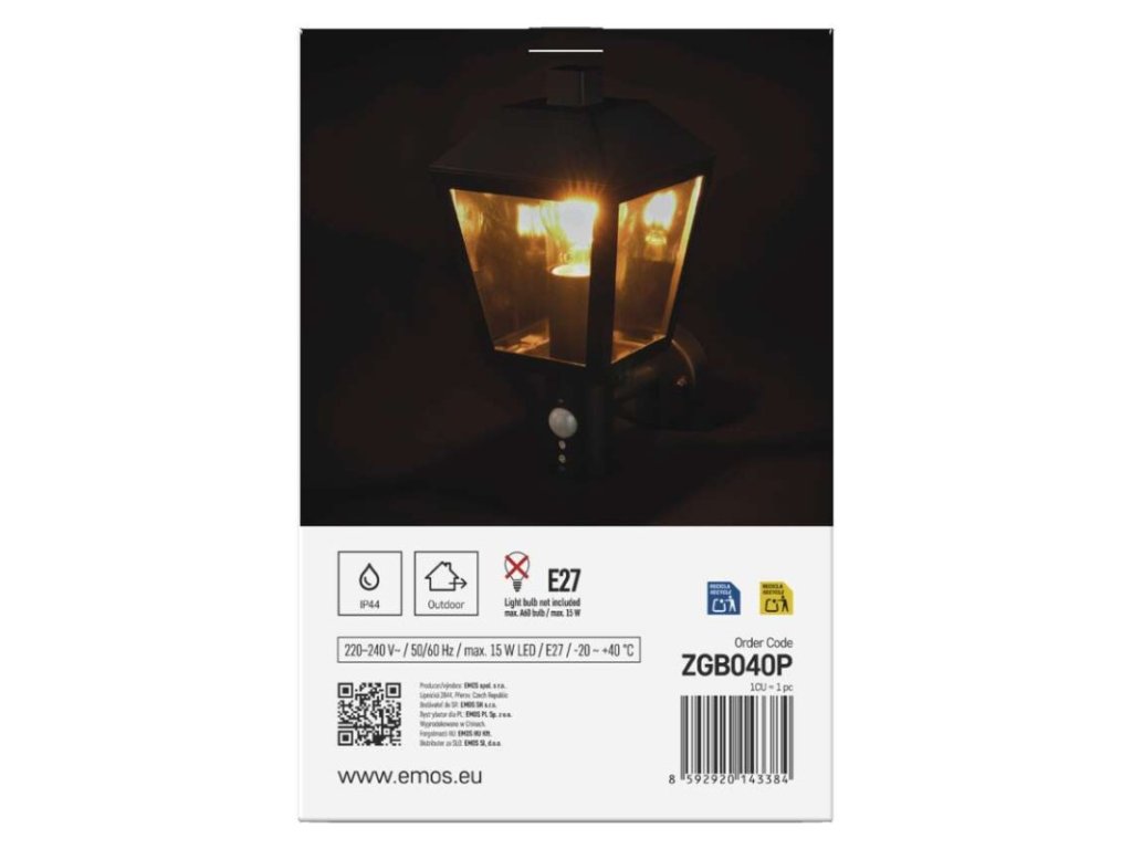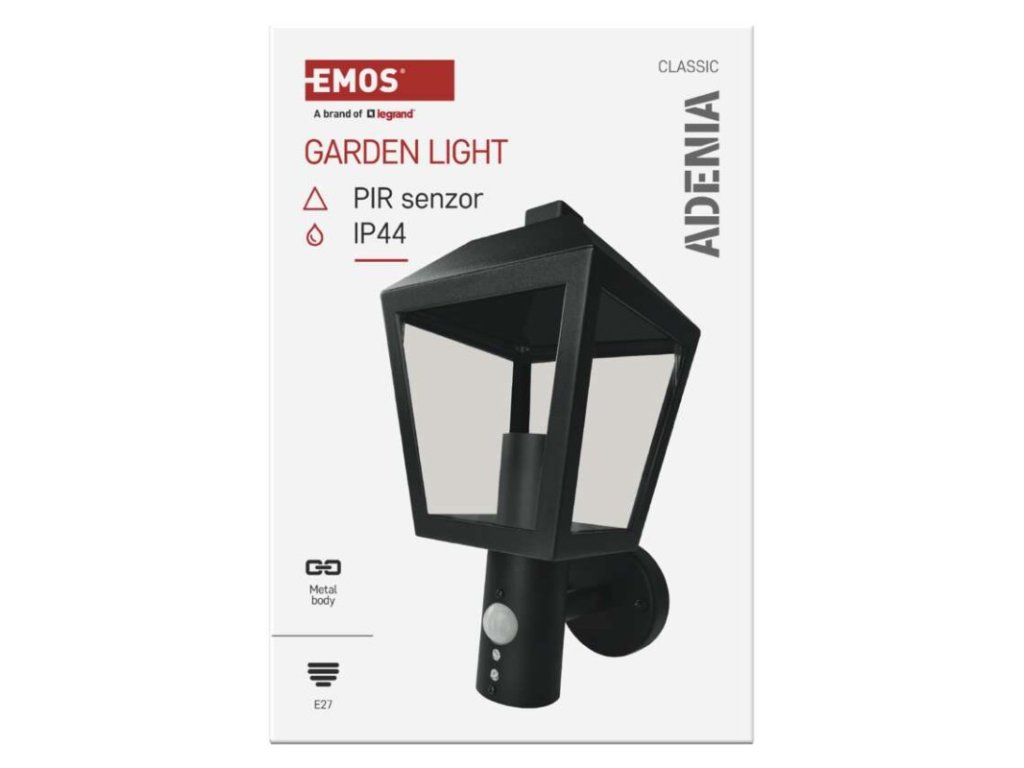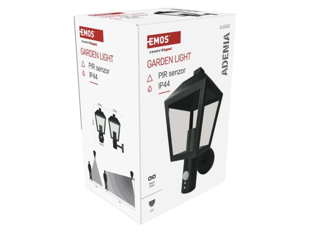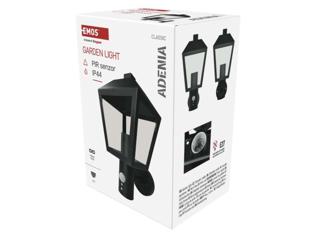 farba: čierna|farba svetla: –|dosah PIR senzora: 8 m|energetická trieda použitého svetelného zdroja: –|fotovoltický článok: ne|frekvencia: 50/60 Hz|index podania farieb (CRI): –|kategória: CLASSIC|krytie: IP44|materiál: hliník|materiál plast:materiál AC|napätie: 220-240 V~|pätica (uchytenie žiarovky): E27|PIR senzor: áno|príkon: –|predajný obal: 1 ks, krabička|rada: ADENIA|rozmer: 198 × 150 × 298 mm|rozsah pracovnej teploty: -20 ~ +40 °C: –|teplota chromatičnosti: –|vstavaný vypínač: ne|žiarovka súčasťou balenia: ne|zdroj svetla: –|životnosť: –Dodatočné parametre