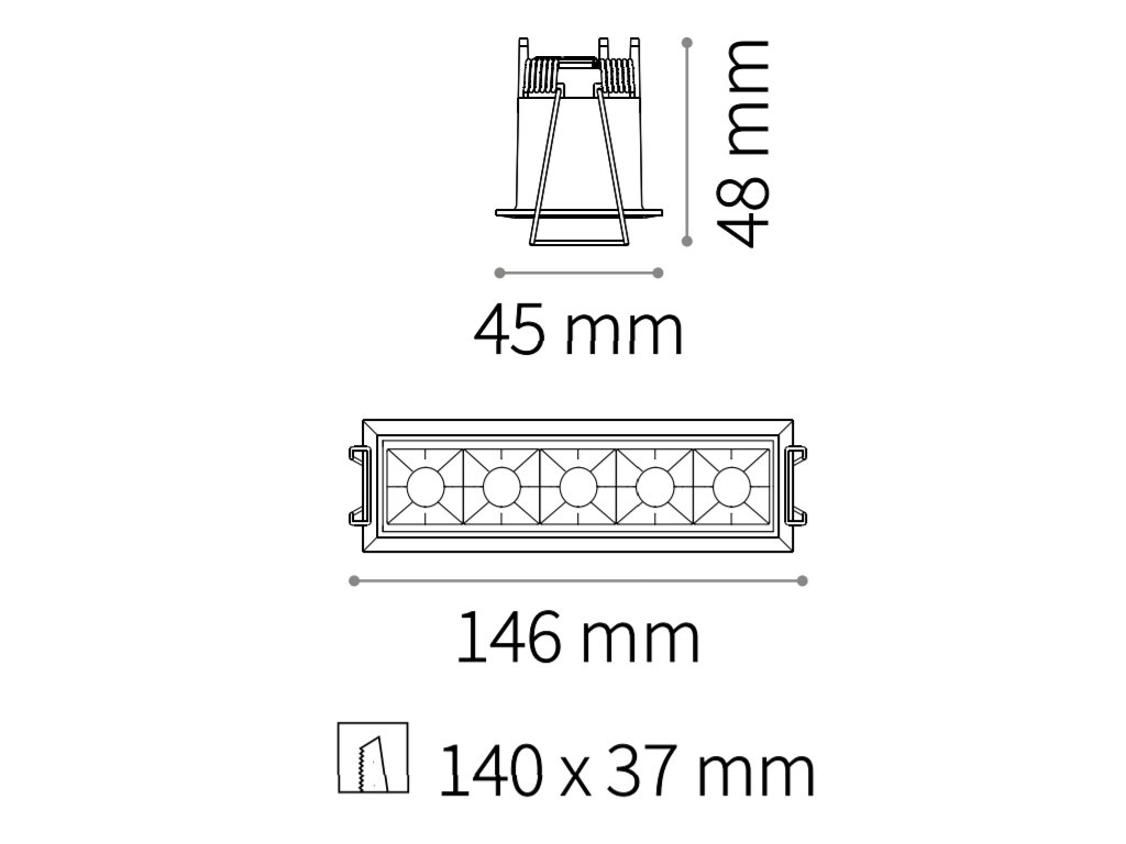 Vstavané obdĺžnikové LED svietidlo LIKA v najväčšej verzii s dĺžkou 27,8 cm vo variante Trim s rámčekom a desiatimi LED bodovými svetlami z kolekcie interiérového osvetlenia dizajnovej talianskej značky Ideal Lux je ideálny na použitie v menších kancelárskych a komerčných priestoroch. Je vhodné na stropnú zapustenú inštaláciu do sadrokartónových podhľadov s hĺbkou zapustenia 4,8 cm. Je vyrobené z kvalitného hliníka liateho pod tlakom s vonkajším bielym lakovaním v kombinácii s lesklo čiernym polykarbonátovým vnútrom. Difúzory vyžarujú neoslňujúce svetlo s hodnotou UGR16 v sústredivom bielom odtieni s teplotou chromatickosti 4000K alebo 3000K a vyžarovacím uhlom 29°. Vnútri je integrovaný výkonný LED čip COB OSRAM s celkovým príkonom 1 x 20 W a svietivosťou až 2200lm / 2500 lm. Hodnota CRI90 označuje veľmi reálne vnímanie farieb. Vstavané LED zdroje sú súčasťou svietidla bez možnosti výmeny, čo robí svietidlo úplne bezúdržbovým. Životnosť je extrémne dlhá až 30.000 h. Driver ON/OFF je súčasťou. Krytie IP20 značí vhodnosť použitia iba v interiéri bez zvýšenej vlhkosti. Výrobca ponúka predĺženú záruku 5 rokov. Svietidlo je možné stmievať pri zakúpení stmievateľného trafa DALI s výkonom 25W (obj. kód 268002). Celkové rozmery svietidla sú 48 x 278 x 45 mm. Na montáž je potrebný otvor s rozmermi 37 x 273 mm.