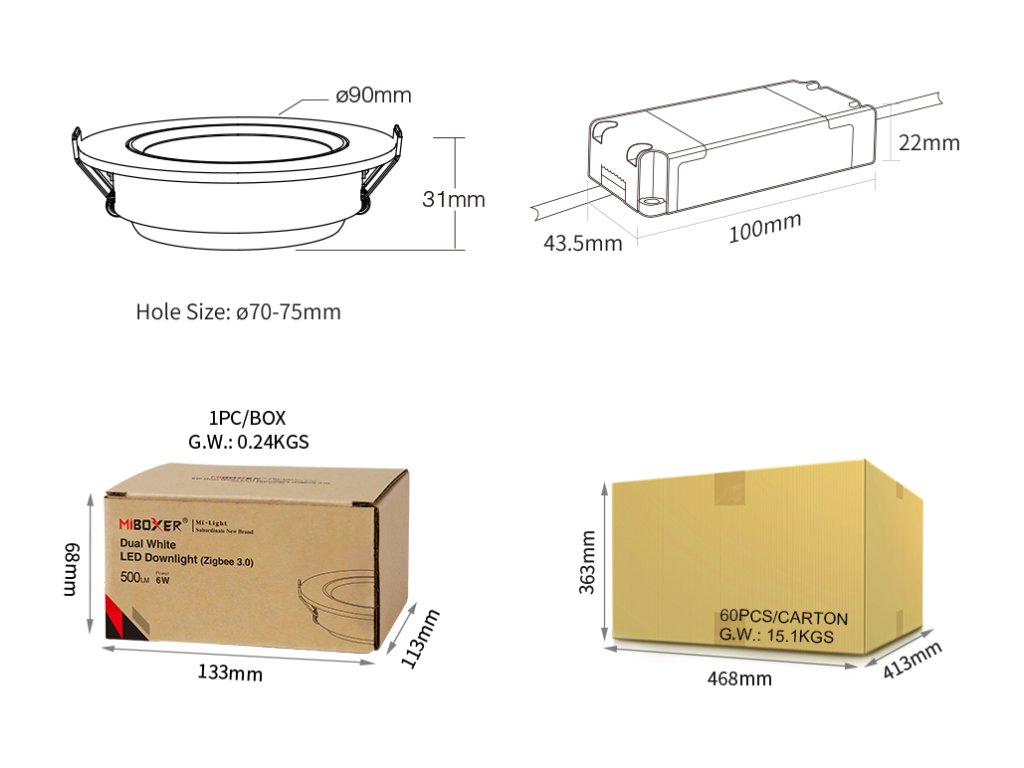 LED zápustné svietidlo CCT Mi-light, 6W, Zigbee 3.0, DW2-06A-ZB