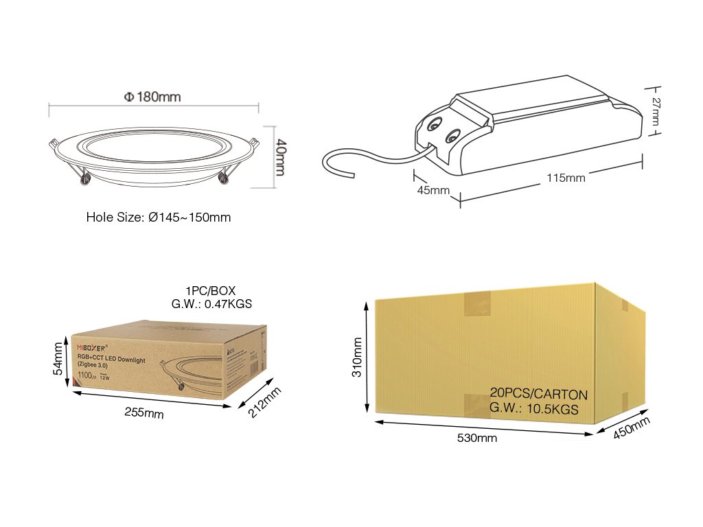 LED zápustné svietidlo RGB+CCT Mi-light, 12W, Zigbee 3.0, FUT066Z