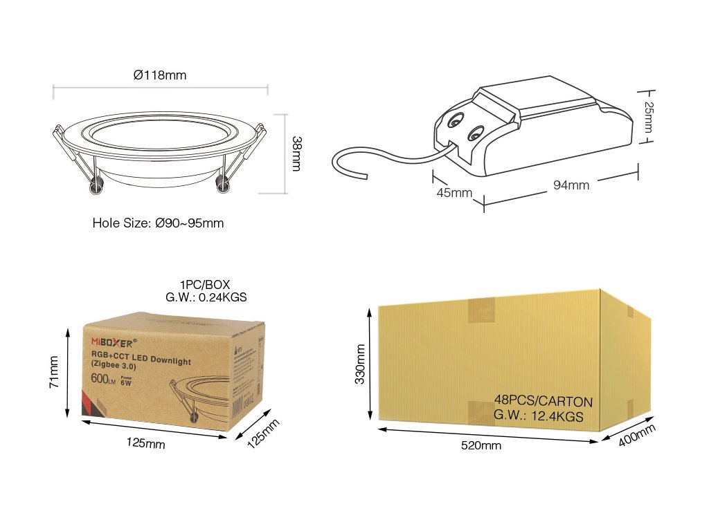 LED zápustné svietidlo RGB+CCT Mi-light, 6W, Zigbee 3.0, FUT068Z