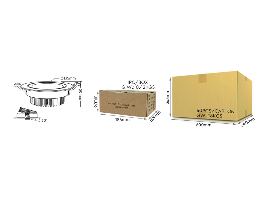 LED zápustné svietidlo RGB+CCT Mi-light, 9W, 2.4GHz, RF ovládanie, FUT062