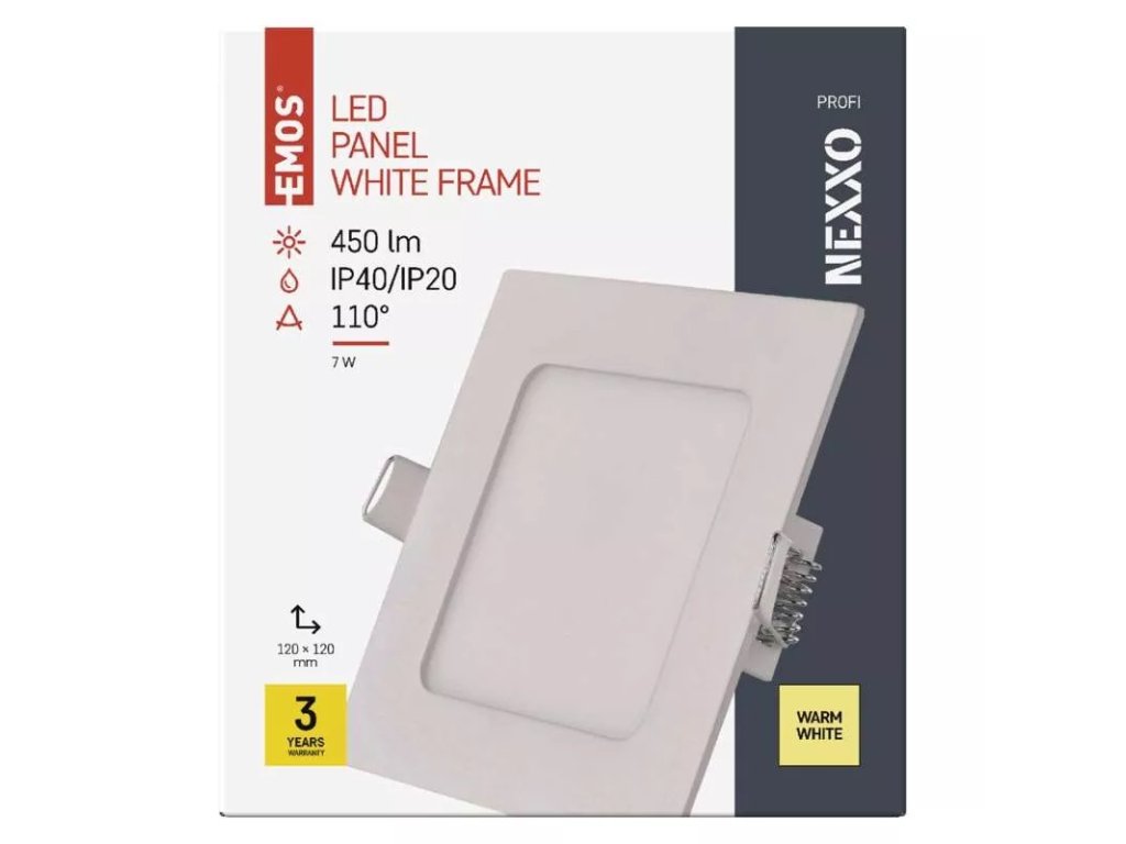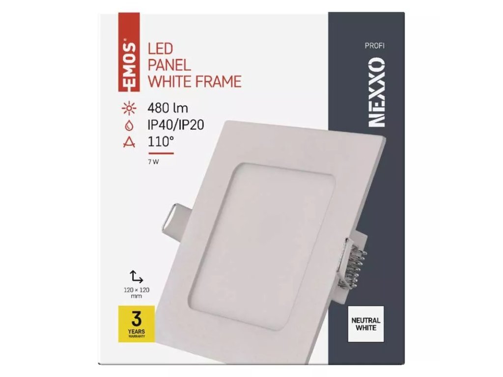 LED zápustný panel NEXXO, 12cm, 7W, štvorcový, biely