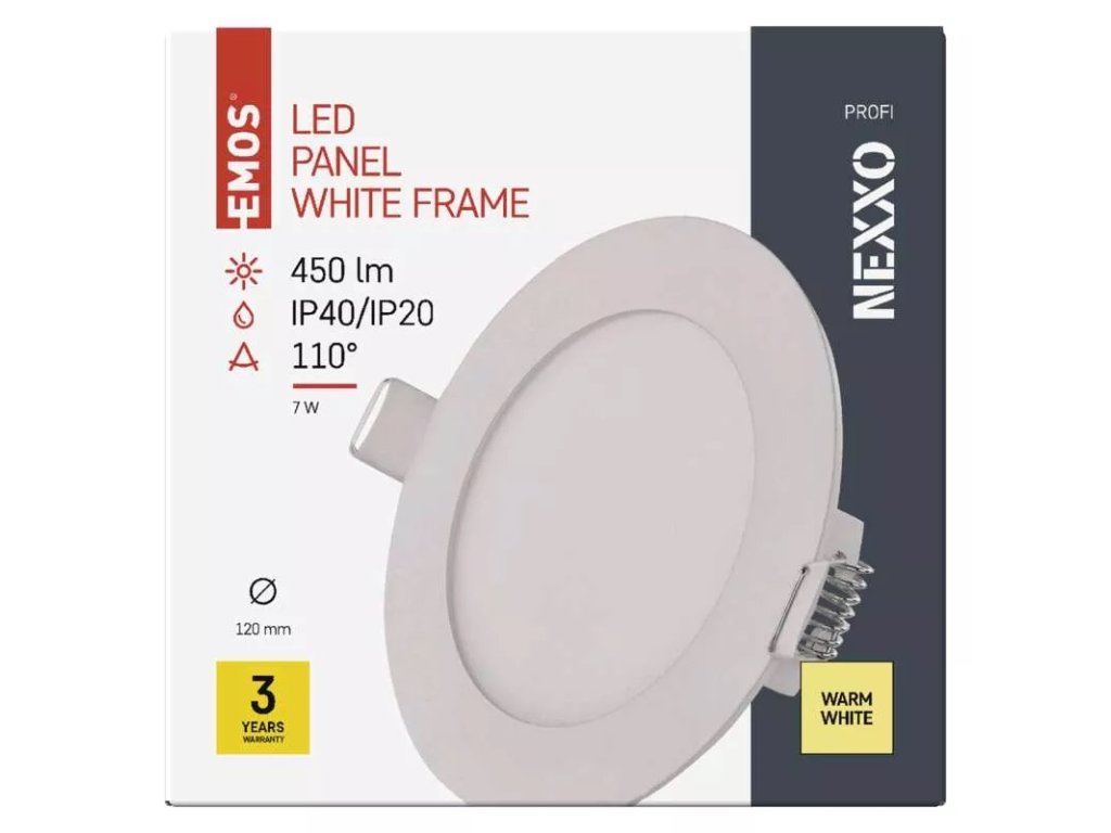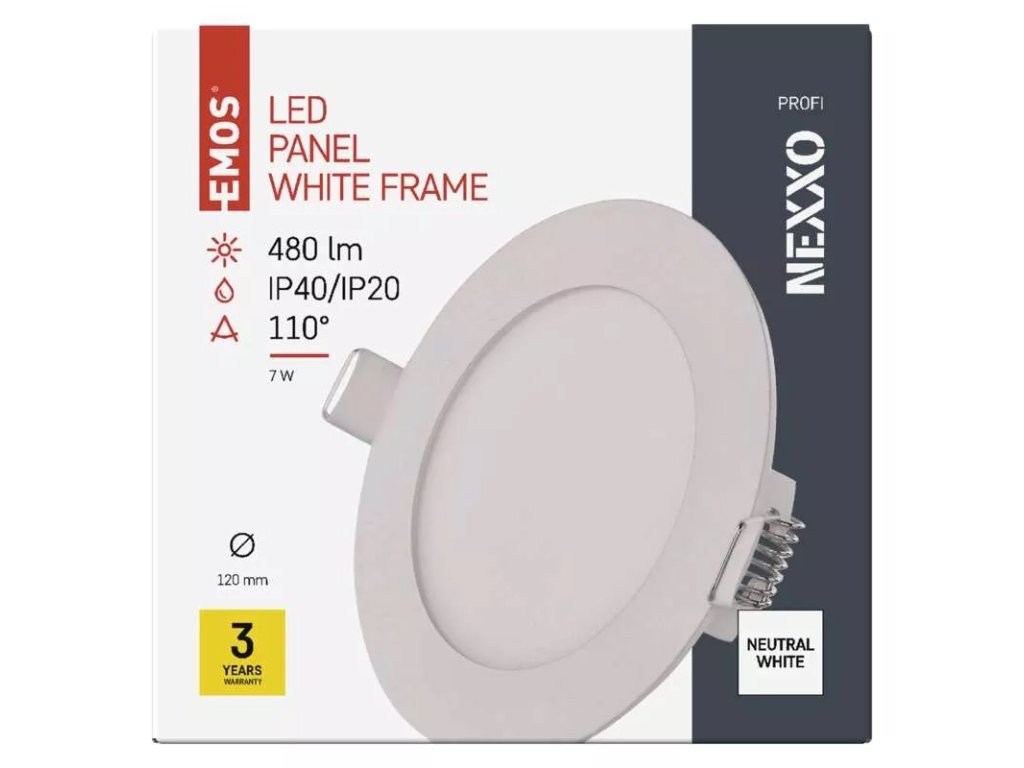 LED zápustný panel NEXXO ø12cm, 7W, okrúhly, biely