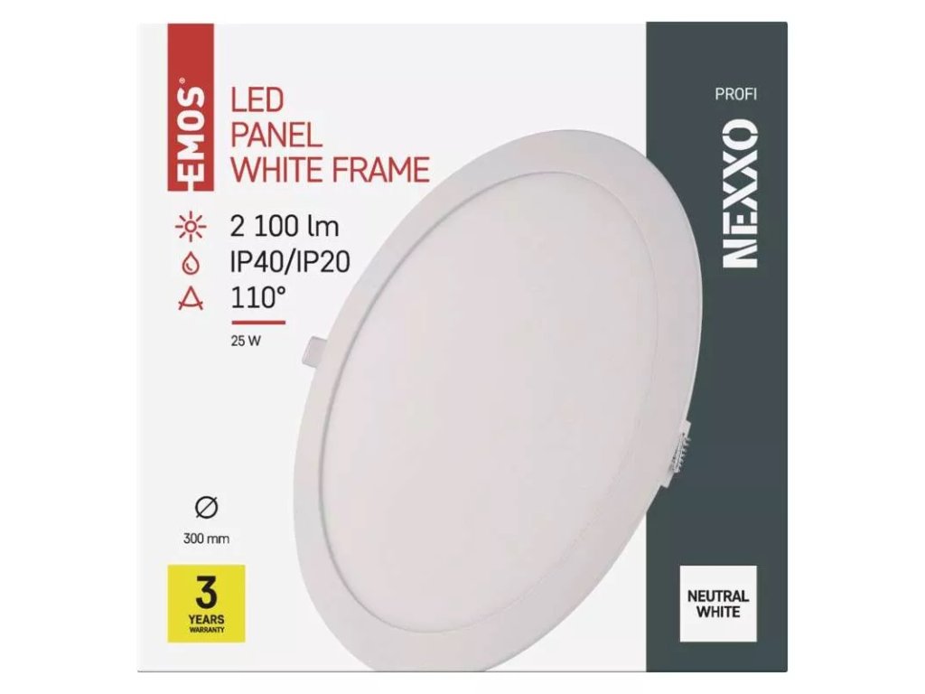 LED zápustný panel NEXXO ø30cm, 25W, okrúhly, biely