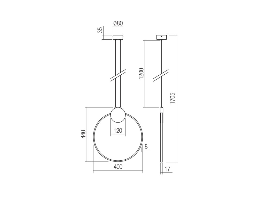 Závesné svietidlo do interiéru, vybavené SMD LED, kovová konštrukcia v pieskovo čiernej farbe s mosadzným hliníkovým krúžkom, difúzor z bieleho silikónu.