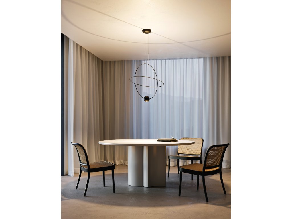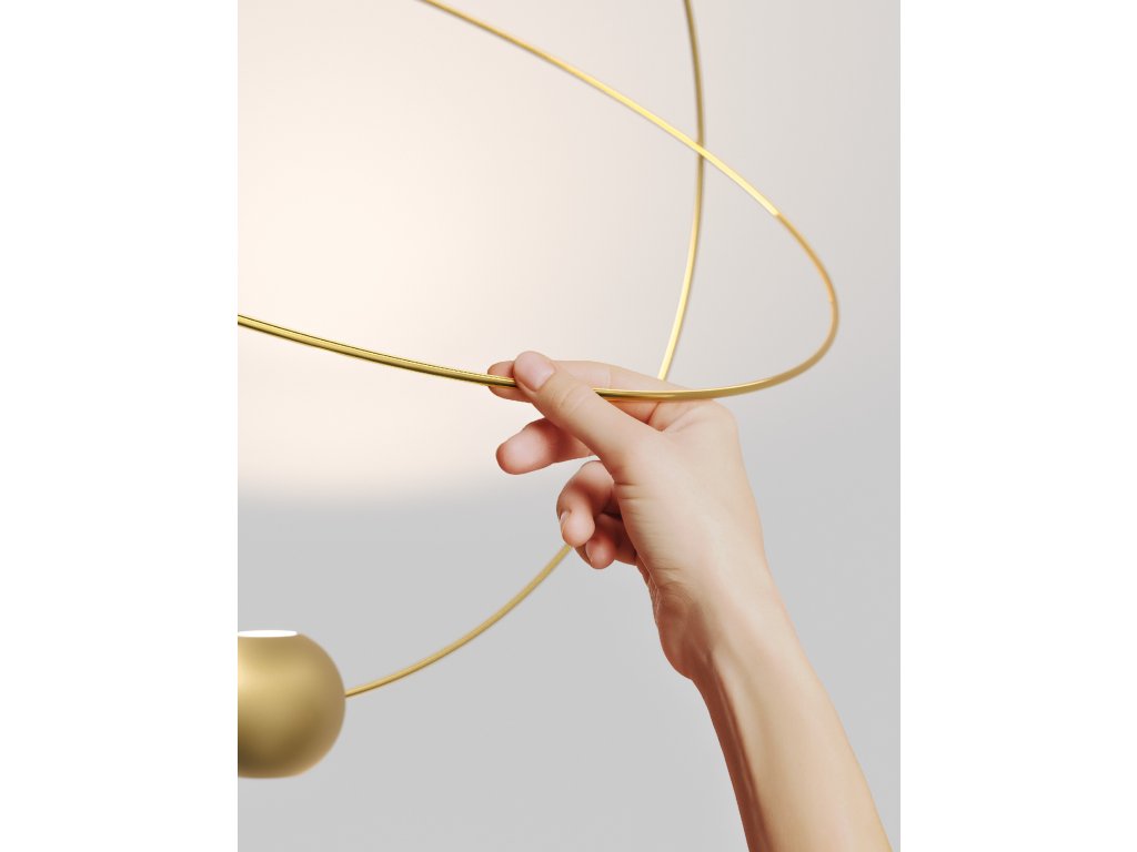Centrálny prstenec je možné flexibilne nastaviť do rôznych výšok aj uhlov, čo umožňuje hrať sa s efektmi svetla a tieňov. Elara je vybavená stmievačom, ktorý sa ovláda cez nástenný vypínač, a poskytuje tak možnosť prispôsobiť atmosféru podľa nálady či situácie.