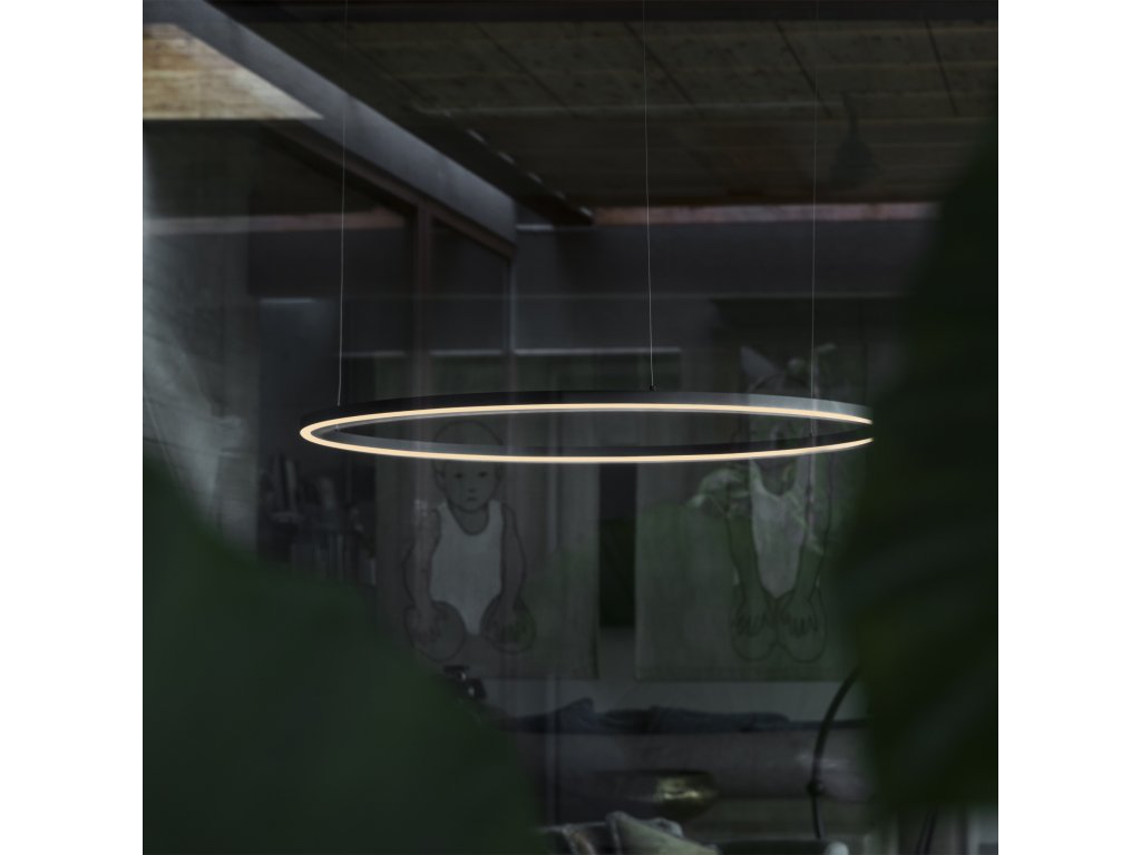 - moderný závesný luster Oracle Slim D150 z kolekcie interiérového osvetlenia talianskej značky Ideal Lux je najväčším variantom tejto série a je vhodný na osvietenie veľkých miestností,