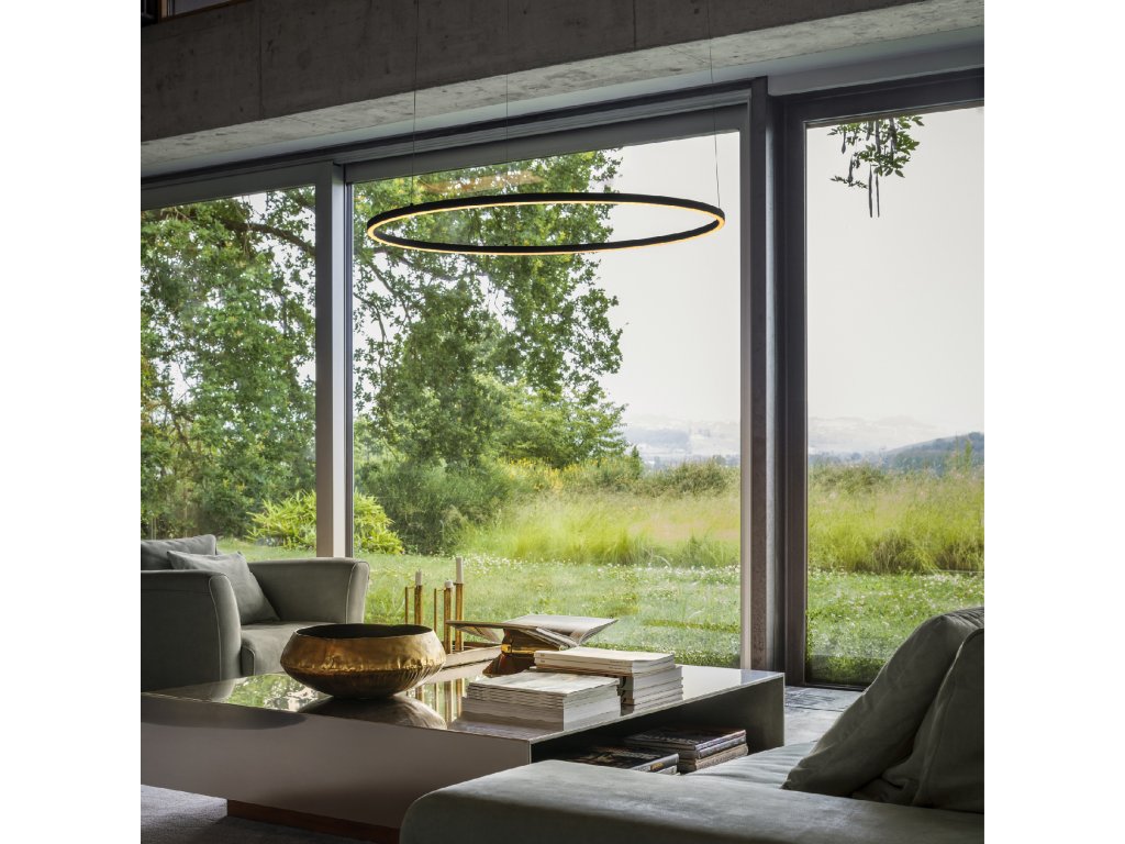 - moderný závesný luster Oracle Slim D150 z kolekcie interiérového osvetlenia talianskej značky Ideal Lux je najväčším variantom tejto série a je vhodný na osvietenie veľkých miestností,