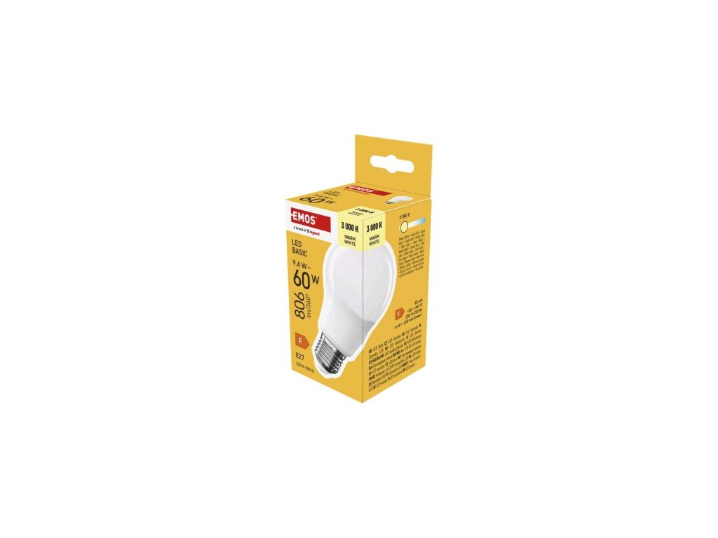 farba svetla: teplá biela|energetická trieda: F|index podania farieb (CRI): 80|kompatibilita: –|náhrada za žiarovku: 60 W|napätie: 230 V~/50 Hz|notifikácia do mobilnej aplikácie: ne|ovládanie hlasovými asistentmi: ne|pätica (uchytenie žiarovky): E2 cyklov: 20 000|podporované OS: –|prenosová frekvencia: –|príkon: 9,4 W|predajný obal: 1 ks, krabička|protokol: –|rad: BASIC|rozmer: 60 × 60 × 110 (max.) mm|stmievateľná: ne|s| 806 lm|technológia: LED|teplota chromatickosti: 3 000 K|tvar: A60|typ čipov: SMD|účinník: 0,50|uhol vyžarovania: 200°|záručná doba: 2 roky|životnosť: 20 000 hodínDodatočné parametre