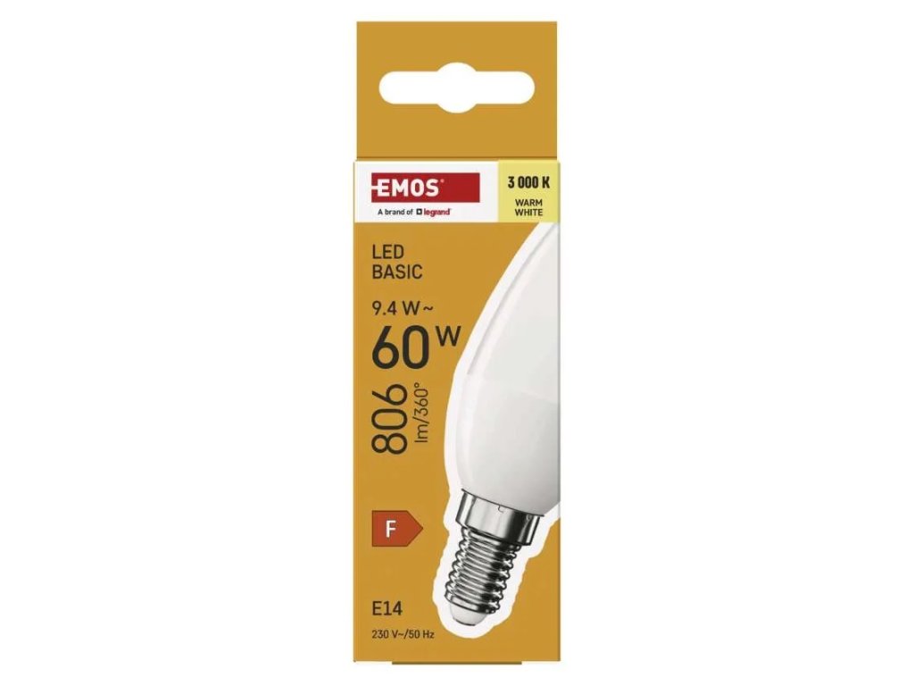 farba svetla: teplá biela|energetická trieda: F|index podania farieb (CRI): 80|kompatibilita: –|náhrada za žiarovku: 66 W|napätie: 230 V~/50 Hz|notifikácia do mobilnej aplikácie: –|ovládanie hlasovými asistentmi: –|pätica (uchytenie žiarovky):| cyklov: 15 000|podporované OS: –|prenosová frekvencia: –|príkon: 8,3 W|predajný obal: 1 ks, krabička|protokol: –|rad: BASIC|rozmer: 110 × 38 × 38 mm|stmievateľná: ne|svetelná: ne|svetelná 900 lm|technológia: LED|teplota chromatickosti: 3 000 K|tvar: sviečka|typ čipov: SMD|účinník: 0,55|uhol vyžarovania: 220°|záručná doba: 2 roky|životnosť: 20 000 hodínDodatočné parametre