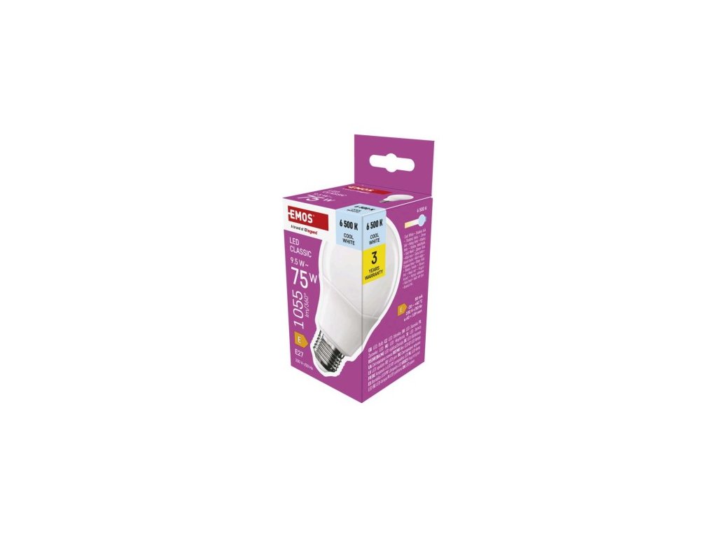 farba svetla: studená biela|energetická trieda: E|index podania farieb (CRI): 80|kompatibilita: –|náhrada za žiarovku: 75 W|napätie: 230 V~/50 Hz|notifikácia do mobilnej aplikácie: ne|ovládanie hlasovými asistentmi: ne|pätica (uchytenie žiarovky): E2 cyklov: 30 000|podporované OS: –|prenosová frekvencia: –|príkon: 9,5 W|predajný obal: 1 ks, krabička|protokol: –|rad: CLASSIC|rozmer: 60 × 60 × 109 mm|stmievateľná: ne|seľ| 1 055 lm|technológia: LED|teplota chromatičnosti: 6 500 K|tvar: A60|typ čipov: SMD|účnik: 0,50|uhol vyžarovania: 180°|záručná doba: 3 roky|životnosť: 30 000 hodínDodatočné parametre