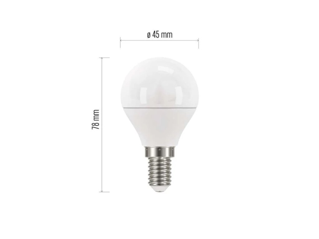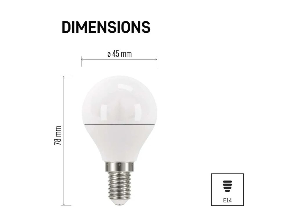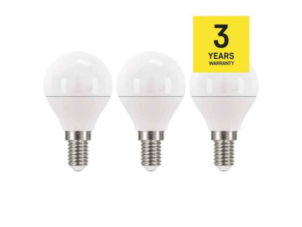 farba svetla: teplá biela|energetická trieda: F|index podania farieb (CRI): 80|kompatibilita: –|náhrada za žiarovku: 40 W|napätie: 230 V~/50 Hz|notifikácia do mobilnej aplikácie: –|ovládanie hlasovými asistentmi: –|pätica (uchytenie žiarovky): E1 25 000|podporované OS: –|prenosová frekvencia: –|príkon: 5 W|predajný obal: 3 ks, krabička|protokol: –|rad: CLASSIC|rozmer: 78 × 45 × 45 mm|stmievateľná: ne|svetelná účinnosť: 78 lm lm|technológia: LED|teplota chromatickosti: 2 700 K|tvar: Mini Globe|typ čipov: 2835|účnik: 0,5|uhol vyžarovania: 220°|záručná doba: 3 roky|životnosť: 30 000 hodín