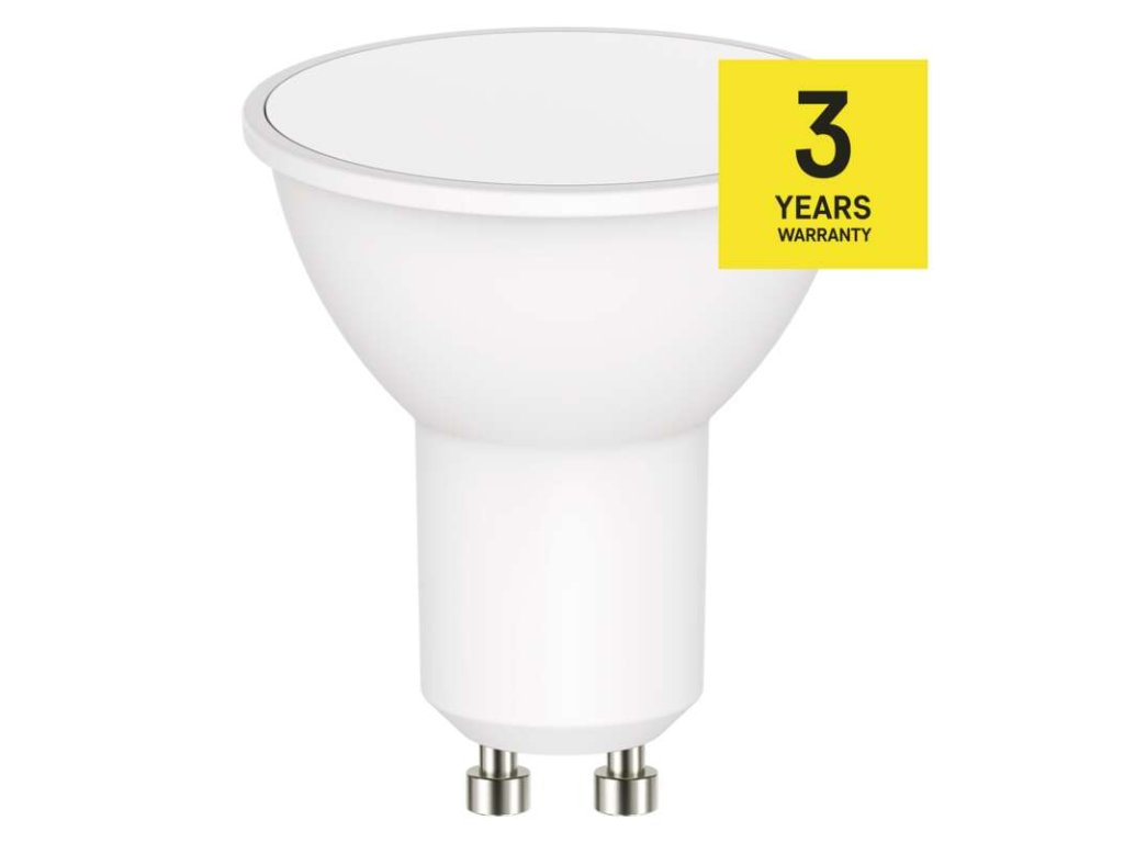 LED žiarovka s päticou GU10 s výkonom 3,8 W, 320 lumen (náhrada za žiarovku 30W). Farba svetla teplá biela 4000 Kelvin, 30 000 hod. svietivosti, uhol svietivosti 110 °. Svetelný zdroj nie je stmievateľný.