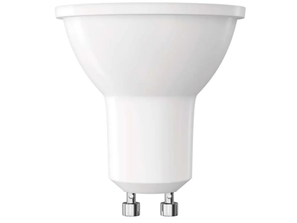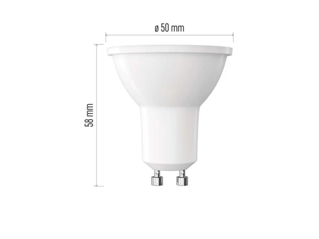 LED žiarovka s päticou GU10 s výkonom 3 W, 345 lúmen (náhrada za žiarovku 32W). Farba svetla teplá biela 3000 Kelvin, 30 000 hod. svietivosti, uhol svietivosti 110 °. Svetelný zdroj nie je stmievateľný.
