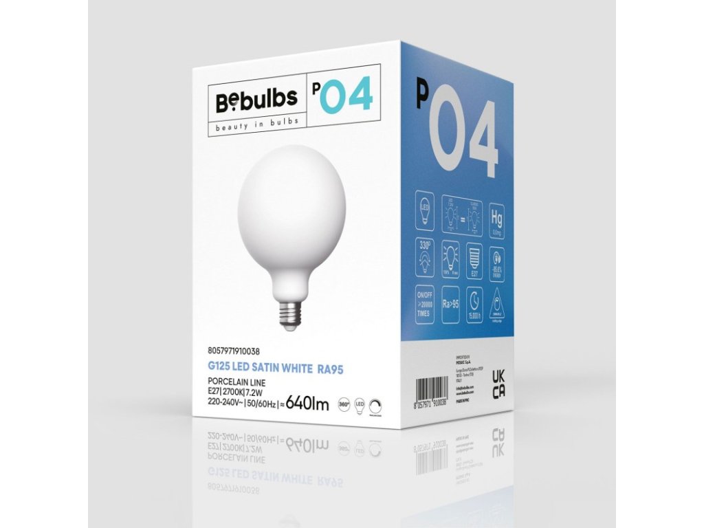 LED žiarovka E27 CRI 95 G125 - P04 je vysoko kvalitný výrobok, ktorý poskytuje rovnomerné, teplé a príjemné svetlo, ideálne na osvetlenie domácich priestorov, ako sú obývacie izby, spálne a kuchyne, aj komerčných priestorov. Žiarovka má päticu E27, ktorá umožňuje jednoduchú inštaláciu do existujúcich svietidiel. Vlastnosti Jednou z hlavných vlastností LED žiarovky E27 CRI 95 G125 je jej vysoký index podania farieb (CRI) 95, čo znamená, že reprodukuje farby veľmi presne, a poskytuje tak obzvlášť prirodzené a realistické svetlo.