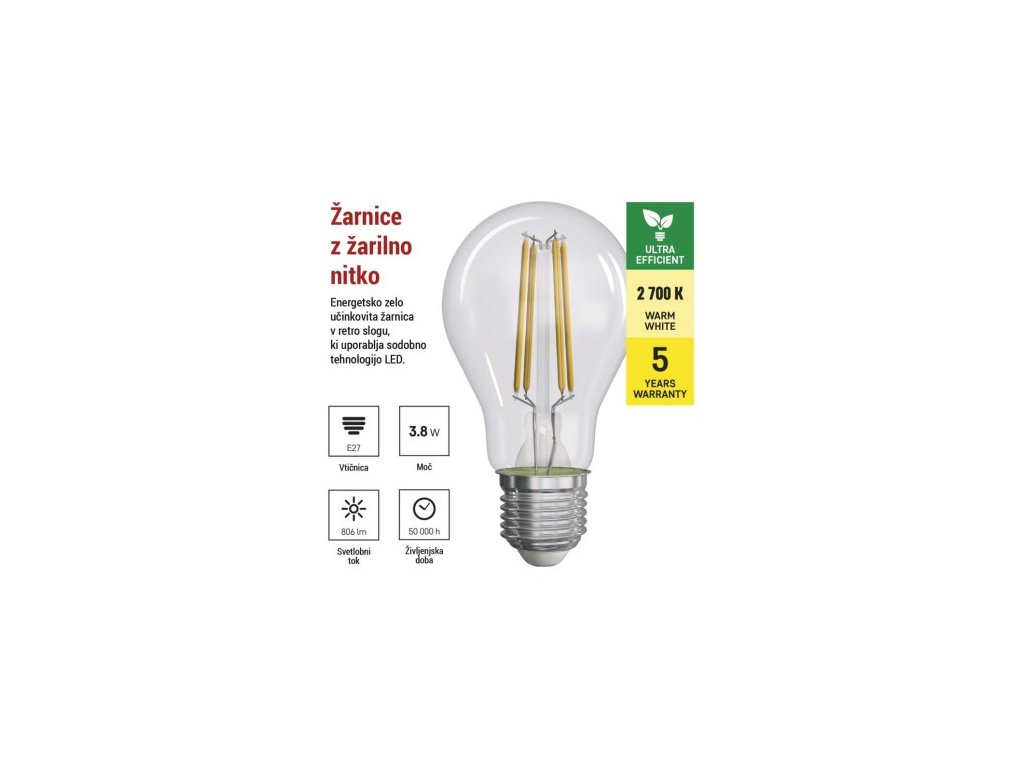 LED žiarovka Filament A60 A CLASS / E27 / 3,8 W (60 W) / 806 lm / teplá biela