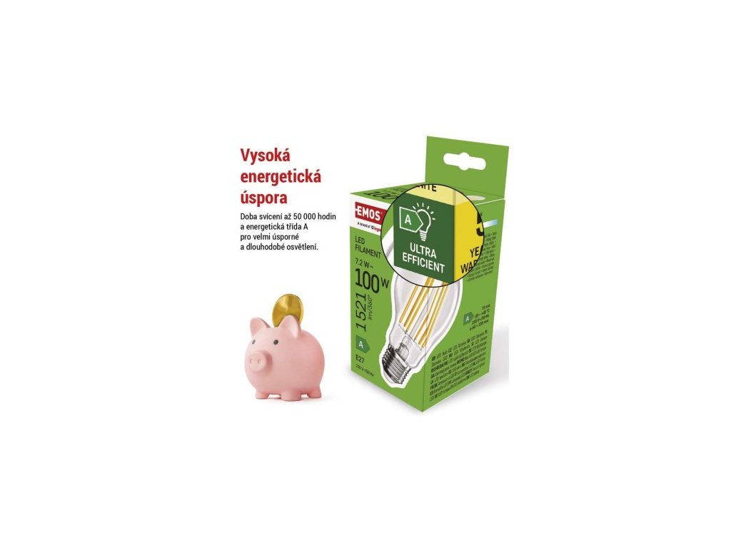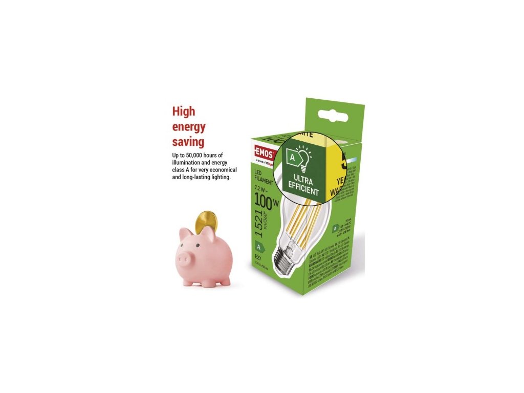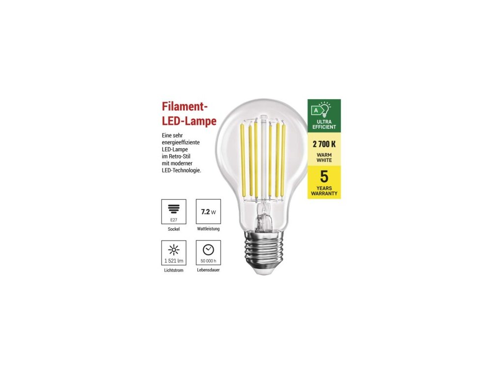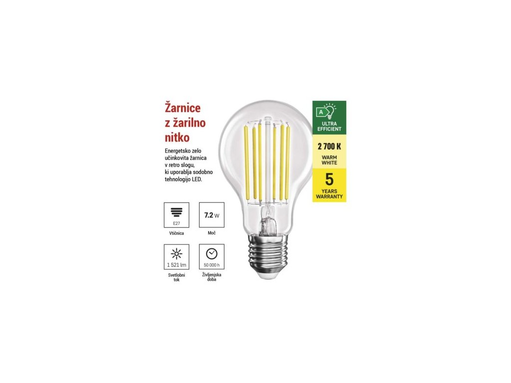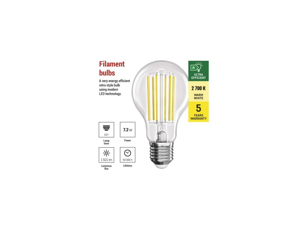 LED žiarovka Filament A60 A CLASS / E27 / 7,2 W (100 W) / 1521 lm / teplá biela