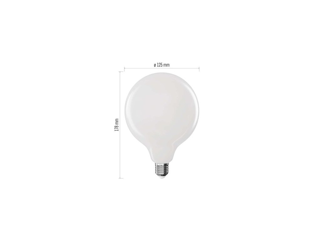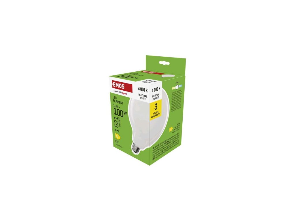 farba svetla: neutrálna biela|energetická trieda: D|index podania farieb (CRI): 80|kompatibilita: –|náhrada za žiarovku: 100 W|napätie: 230 V~/50 Hz|notifikácia do mobilnej aplikácie: ne|ovládanie hlasovými asistentmi: ne|pätica (uchytenie žiarovky4): cyklov: 25 000|podporované OS: –|prenosová frekvencia: –|príkon: 11 W|predajný obal: 1 ks, krabička|protokol: –|rad: FILAMENT|rozmer: 125 × 125 × 178 mm|stmievateľná: ne|sel| 1 521 lm|technológia: LED|teplota chromatickosti: 4 000 K|tvar: G125|typ čipov: COB|účinník: 0,50|uhol vyžarovania: 360°|záručná doba: 3 roky|životnosť: 25 000 hodínDodatočné parametre