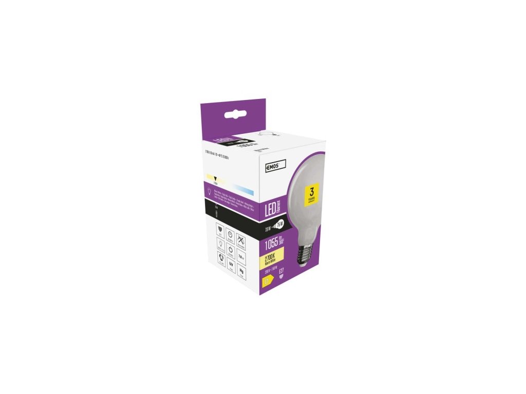 farba svetla: teplá biela|energetická trieda: D|index podania farieb (CRI): 80|kompatibilita: –|náhrada za žiarovku: 75 W|napätie: 230 V~/50 Hz|notifikácia do mobilnej aplikácie: –|ovládanie hlasovými asistentmi: –|pätica (uchytenie žiarovky): E2 25 000|podporované OS: –|prenosová frekvencia: –|príkon: 7,8 W|predajný obal: 1 ks, krabička|protokol: –|rad: FILAMENT|rozmer: 140 × 95 × 95 mm|stmievateľná: ne|svetelná účinnosť: ne|svetelná účinnosť 055 lm|technológia: LED|teplota chromatickosti: 2 700 K|tvar: Globe|typ čipov: COB|účinník: 0,58|uhol vyžarovania: 340°|záručná doba: 3 roky|životnosť: 25 000 hodínDodatočné parametre
