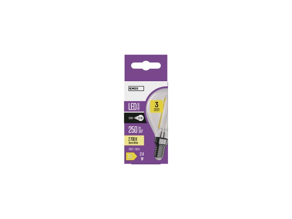farba svetla: teplá biela|energetická trieda: D|index podania farieb (CRI): 80|kompatibilita: –|náhrada za žiarovku: 25 W|napätie: 230 V~/50 Hz|notifikácia do mobilnej aplikácie: –|ovládanie hlasovými asistentmi: –|pätica (uchytenie žiarovky): E1 25 000|podporované OS: –|prenosová frekvencia: –|príkon: 1,8 W|predajný obal: 1 ks, krabička|protokol: –|rad: FILAMENT|rozmer: 80 × 45 × 45 mm|stmievateľná: ne|svetelná účinnosť: 1| lm|technológia: LED|teplota chromatickosti: 2 700 K|tvar: Mini Globe|typ čipov: COB|účinník: 0,41|uhol vyžarovania: 320°|záručná doba: 3 roky|životnosť: 25 000 hodínDodatočné parametre