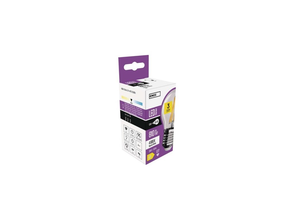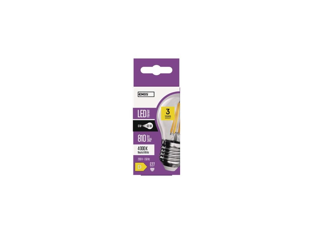 farba svetla: neutrálna biela|energetická trieda: D|index podania farieb (CRI): 80|kompatibilita: –|náhrada za žiarovku: 60 W|napätie: 230 V~/50 Hz|notifikácia do mobilnej aplikácie: –|ovládanie hlasovými asistentmi: –|pätica (uchytenie žiarovky): 30 000|podporované OS: –|prenosová frekvencia: –|príkon: 6 W|predajný obal: 1 ks, krabička|protokol: –|rad: FILAMENT|rozmer: 78 × 45 × 45 mm|stmievateľná: ne|svetelná účinnosť: 135 lm lm|technológia: LED|teplota chromatickosti: 4 000 K|tvar: Mini Globe|typ čipov: COB|účinník: 0,505|uhol vyžarovania: 300°|záručná doba: 3 roky|životnosť: 25 000 hodínDodatočné parametre
