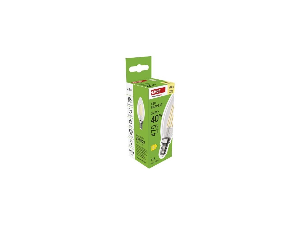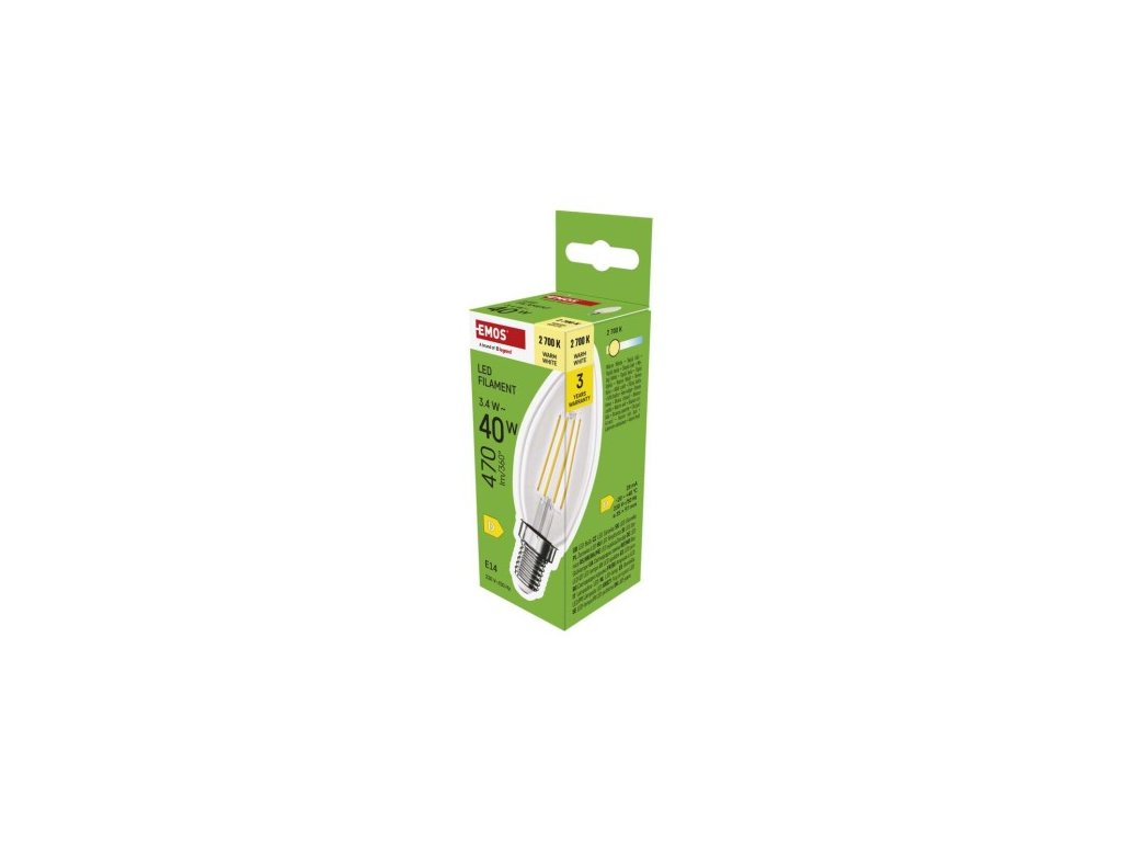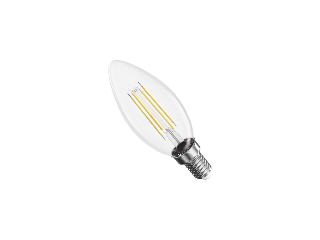 farba svetla: teplá biela|energetická trieda: D|index podania farieb (CRI): 80|kompatibilita: –|náhrada za žiarovku: 40 W|napätie: 230 V~/50 Hz|notifikácia do mobilnej aplikácie: ne|ovládanie hlasovými asistentmi: ne|pätica (uchytenie žiarovky): E1 25 000|podporované OS: –|prenosová frekvencia: –|príkon: 3,4 W|predajný obal: 1 ks, krabička|protokol: –|rad: FILAMENT|rozmer: 35 × 35 × 97 mm|stmievateľná: ne|svetelná účinnosť: 1 lm|technológia: LED|teplota chromatickosti: 2 700 K|tvar: sviečka|typ čipov: COB|účinník: 0,50|uhol vyžarovania: 360°|záručná doba: 3 roky|životnosť: 25 000 hodínDodatočné parametre