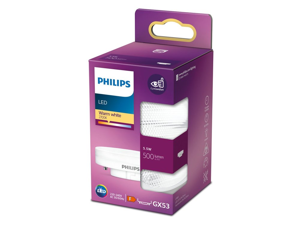 Táto LED žiarovka je ideálnym riešením pre moderné a úsporné osvetlenie. S výkonom 5,5 W a svetelným tokom 500 lm poskytuje príjemné teplé biele svetlo s teplotou 3000 K, ktoré vytvára útulnú atmosféru doma aj v komerčných priestoroch. Vďaka pätici GX53 a kompaktným rozmerom sa ľahko inštaluje do nábytkových, stropných alebo zapustených svietidiel.