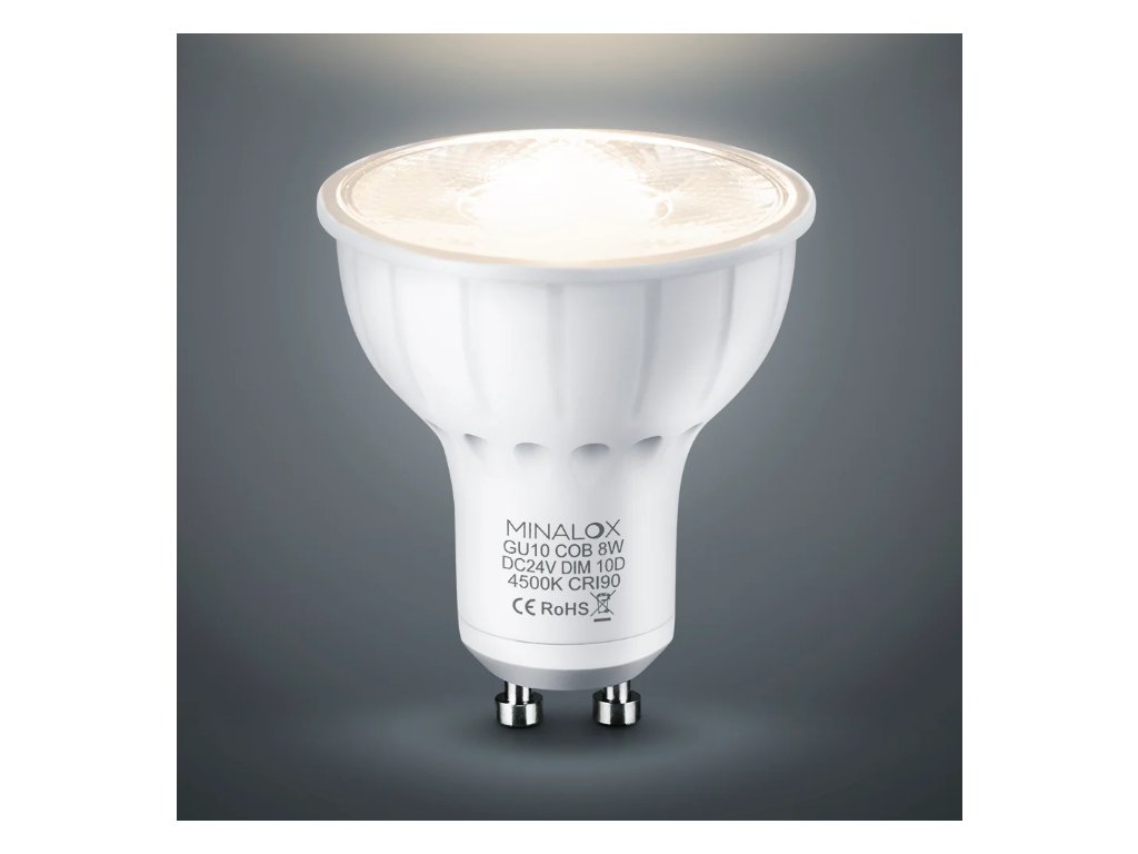 LED žiarovka Minalox GU10, 8W, 24V, 4500K, 10 °