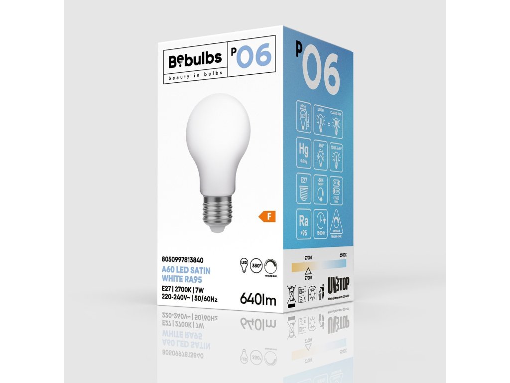 Model P06 má klasický tvar kvapky A60 ktorý sa dokonale prispôsobí akémukoľvek nábytku a dekorácii.
