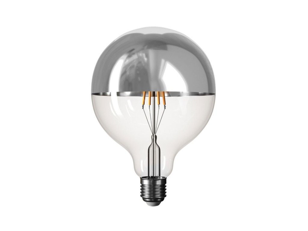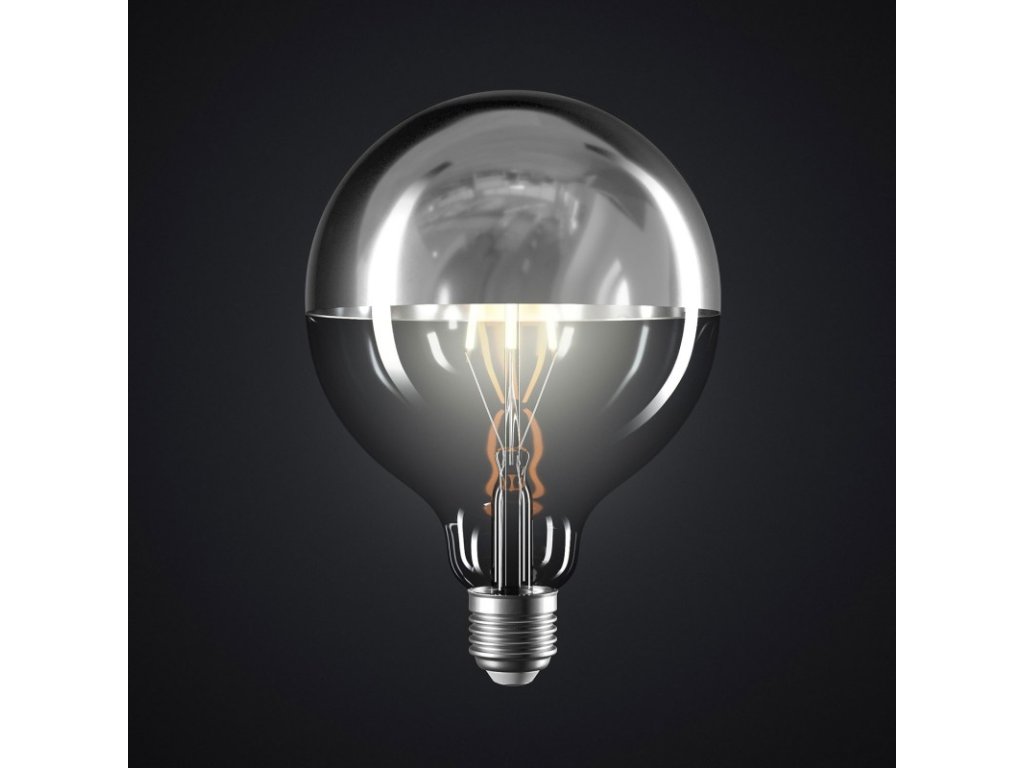 LED žiarovka so striebornou pologuľou b05 5V G125 1,3W E27 stmievateľná 2500K